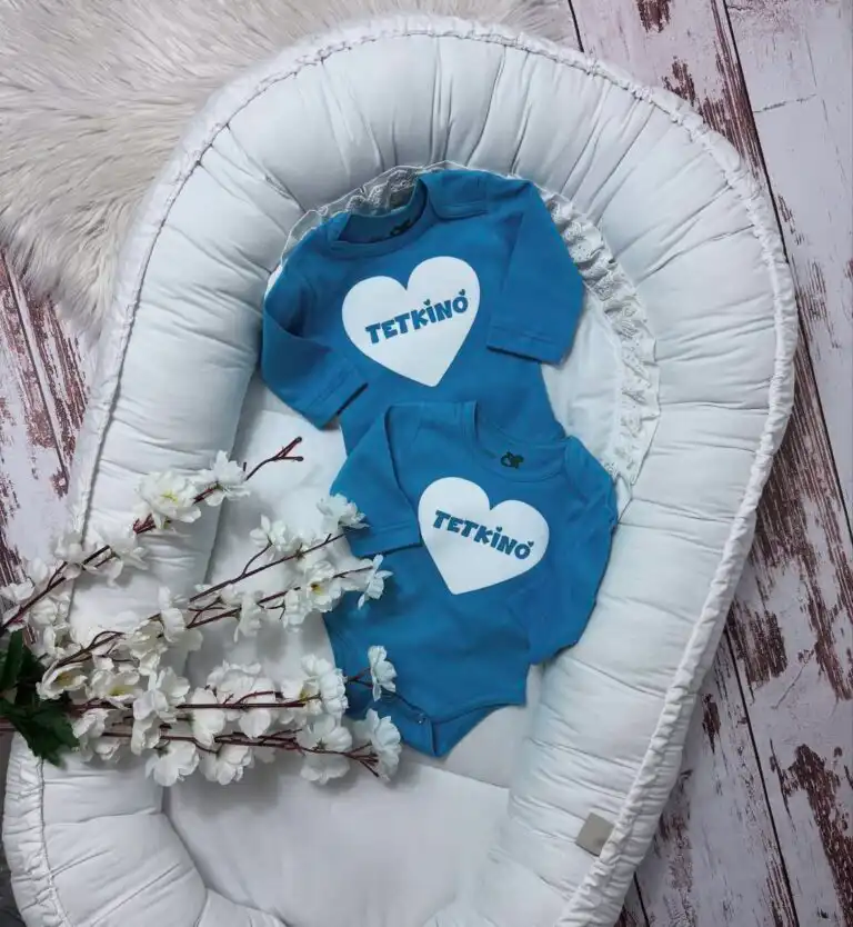 Plavi bodić sa natpisom tetkino beli gliter srce-Bodić :)