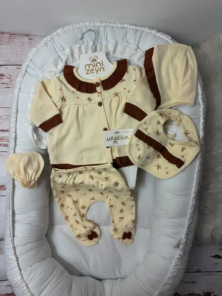 Komplet za novorođenče – Braon cvetić