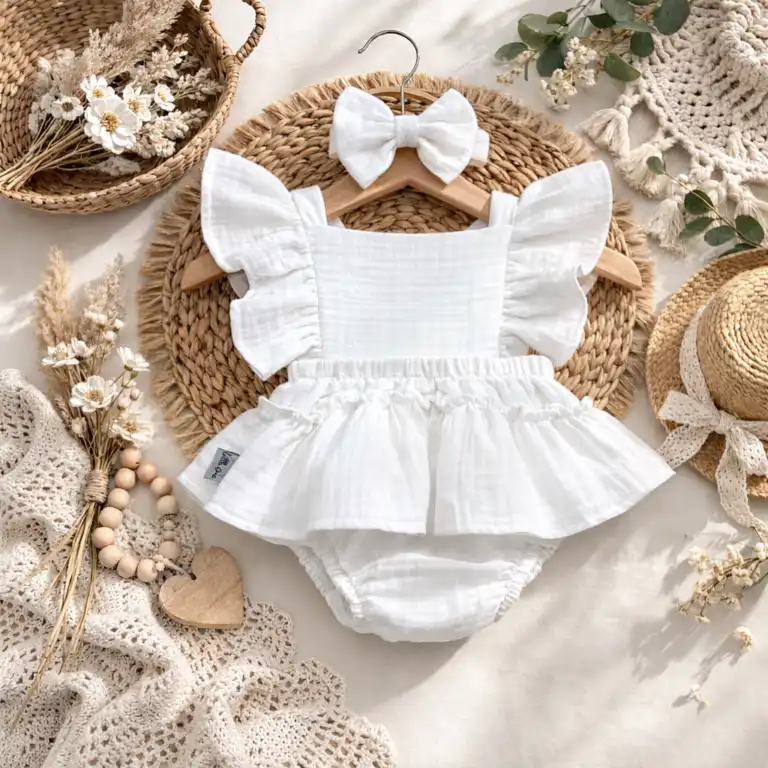 2,200.00 RSD – 2,500.00 RSDRaspon cena: od 2,200.00 RSD do 2,500.00 RSD sa PDV-omRomper od muslina – nežna bež