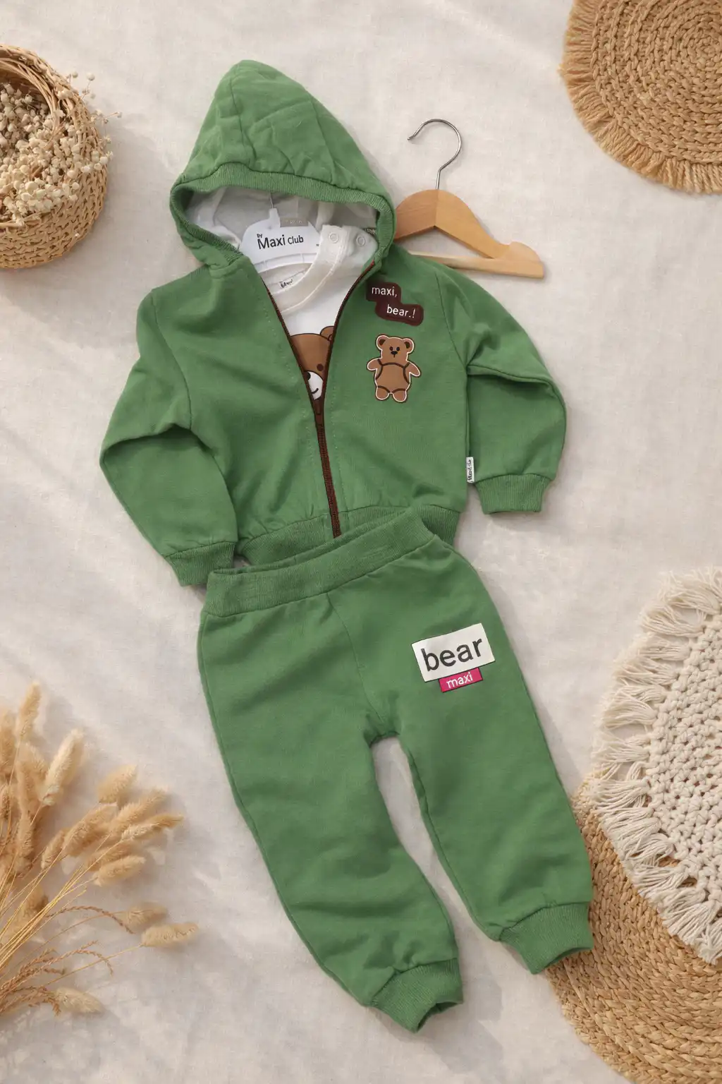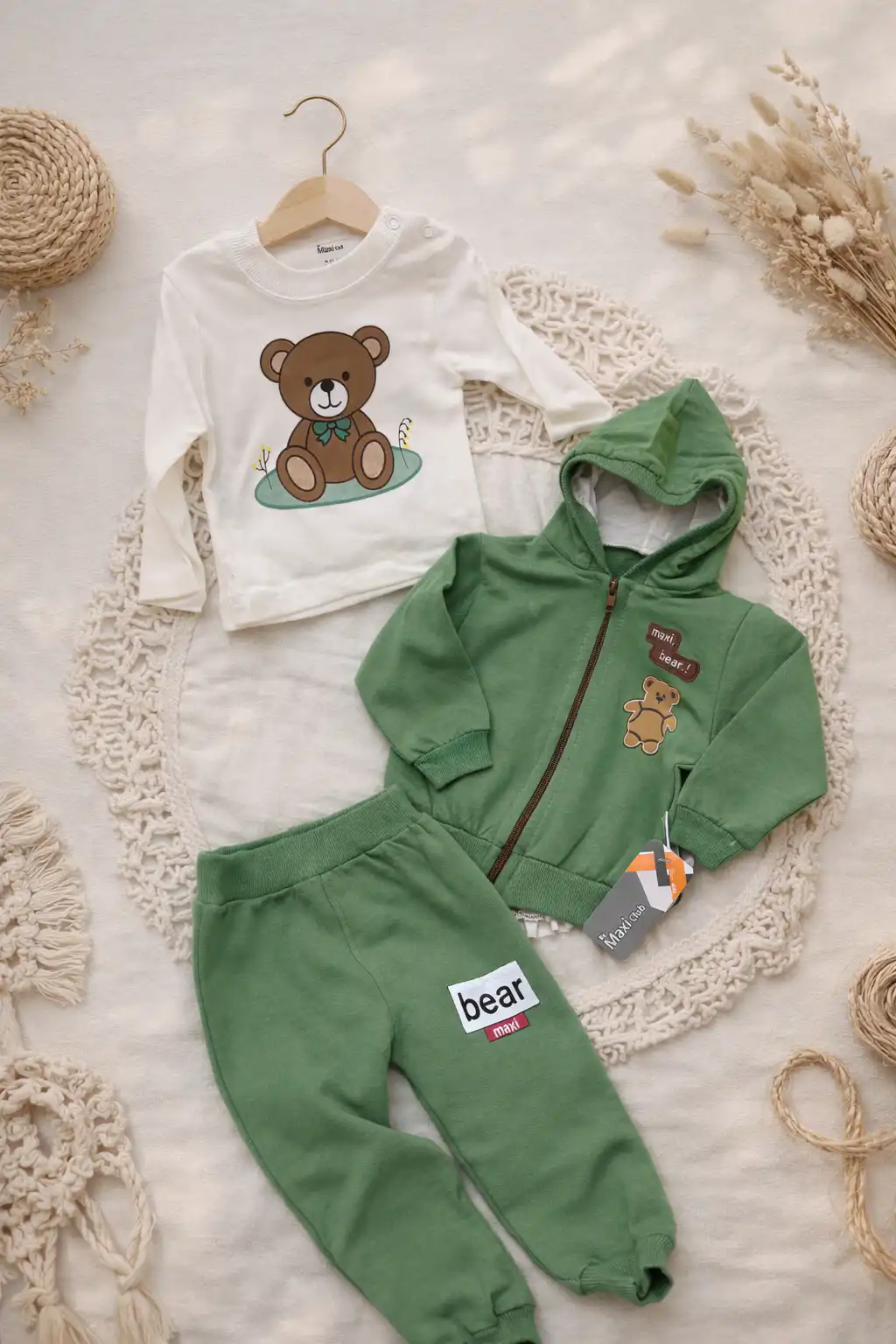 Komplet trenerke za bebe, sastavljen od duksa na raskopčavanje, udobne bluze i donjeg dela, napravljen je od najsavremenijeg pamuka, koji pruža izuzetnu mekoću i nežnost na koži vaše bebe. Idealna za svakodnevne avanture i igre, ova trenerka je savršen izbor za udobnost i stil.