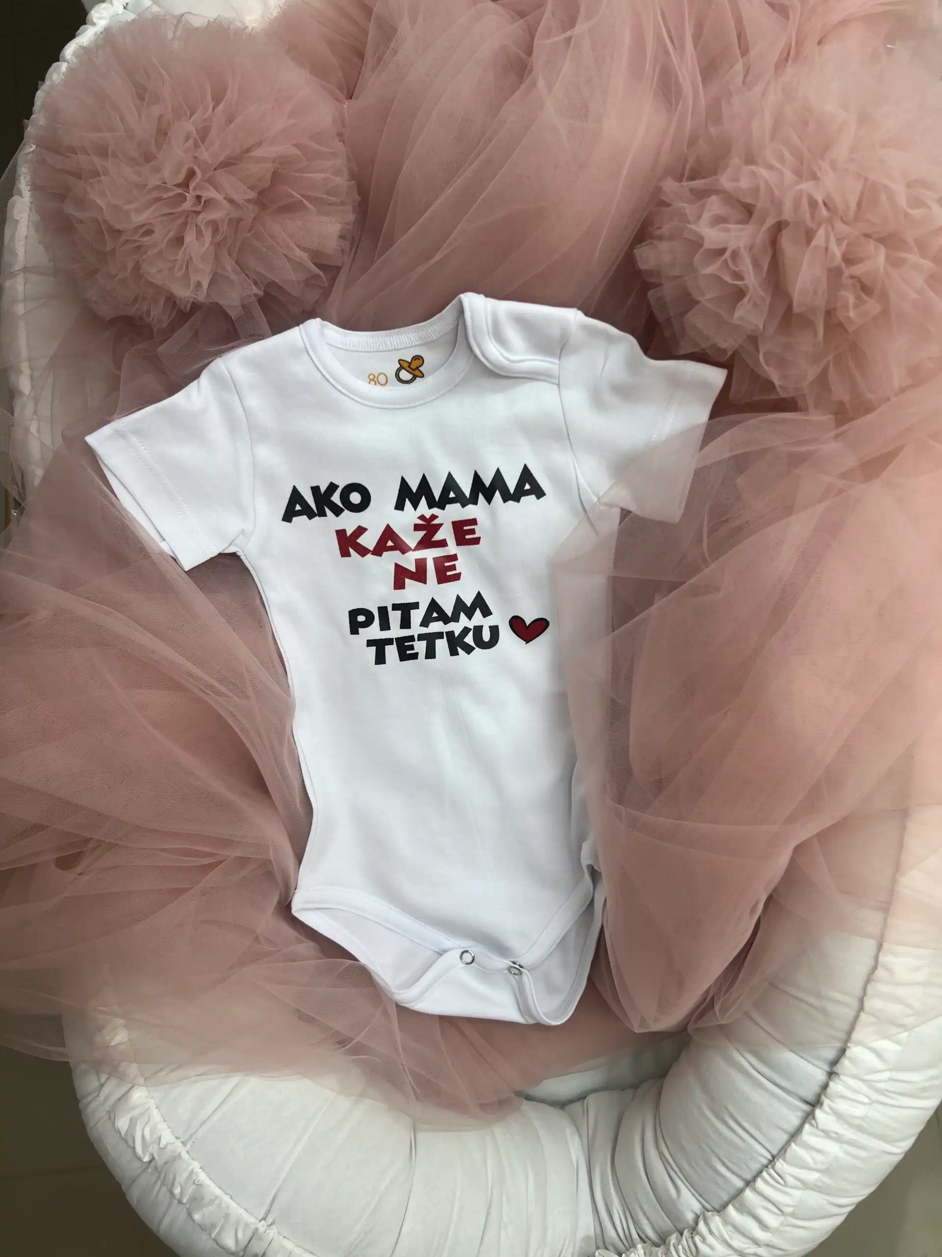 Znaš onu – kad mama kaže „ne“, tetka je tu da kaže „da“! 😜Poklonite svojoj devojčici bodić sa natpisom koji sve mama i tata znaju: