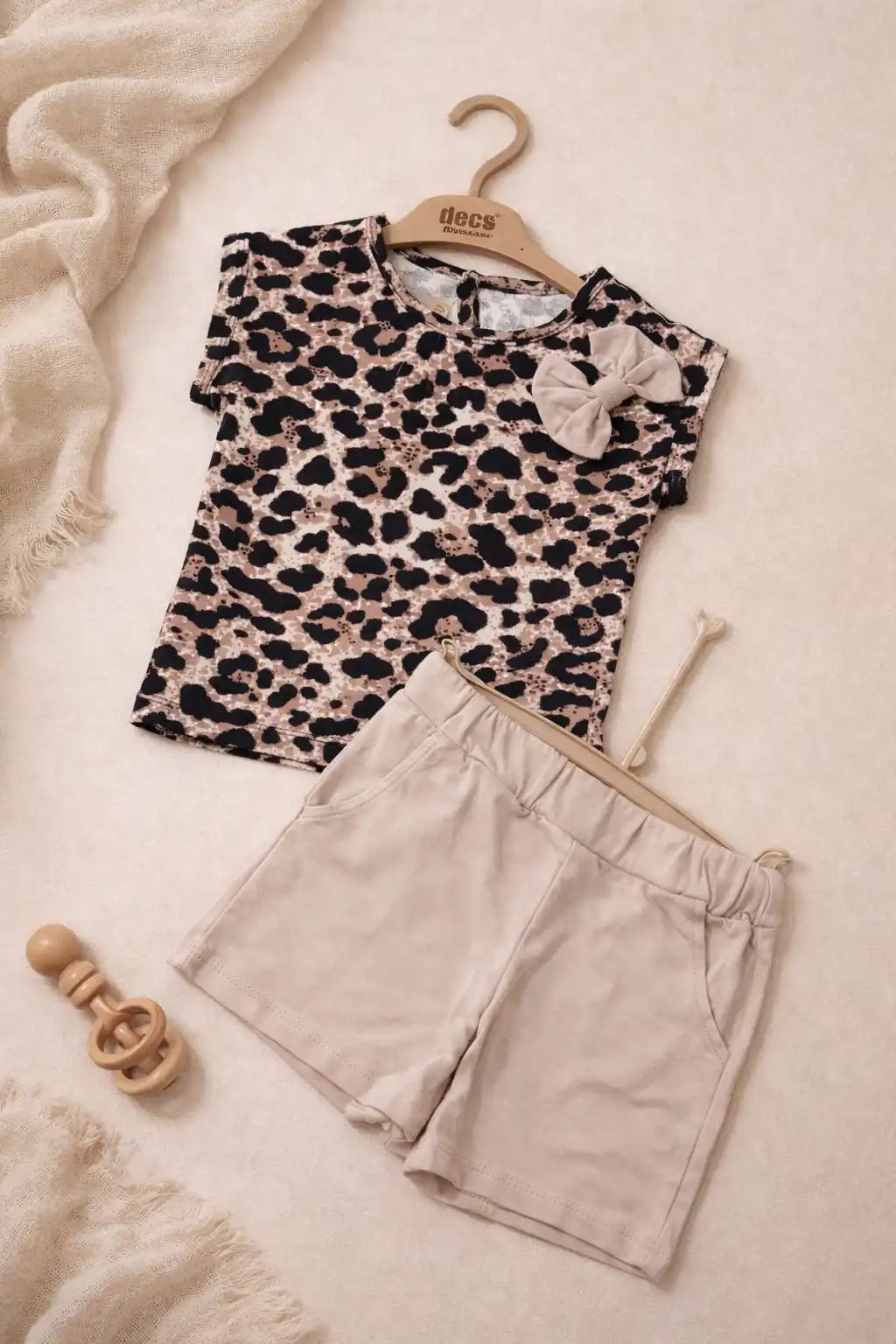 Idealan izbor za svakodnevno nošenje i posebne prilike, uz nežan i moderan dizajn.Majica pamuka sa mašnom + lagani šortz.