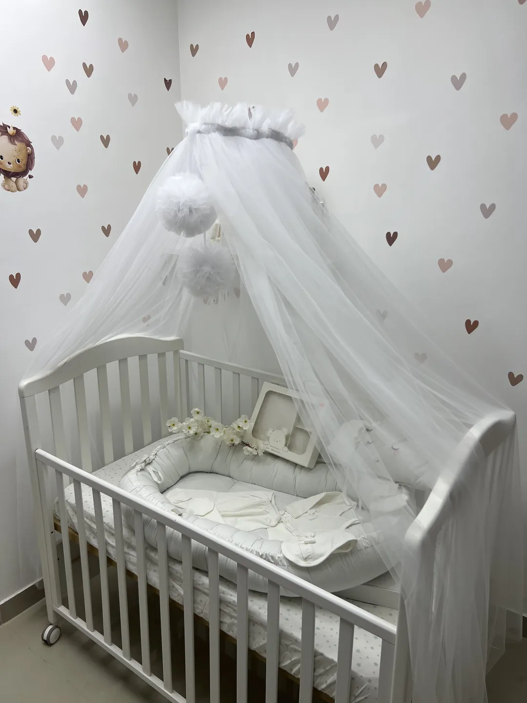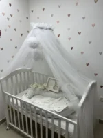 👶🤍 Baldahin za krevetac – Beli 🎀 Šiven od mekanog tila, ovaj baldahin pruža nežnu zaštitu za vaše novorođenče 🌟. Osim što štiti od prašine i insekata, istovremeno je i prelep dekorativni dodatak koji krevetac pretvara u bajkovito utočište ☁️✨.