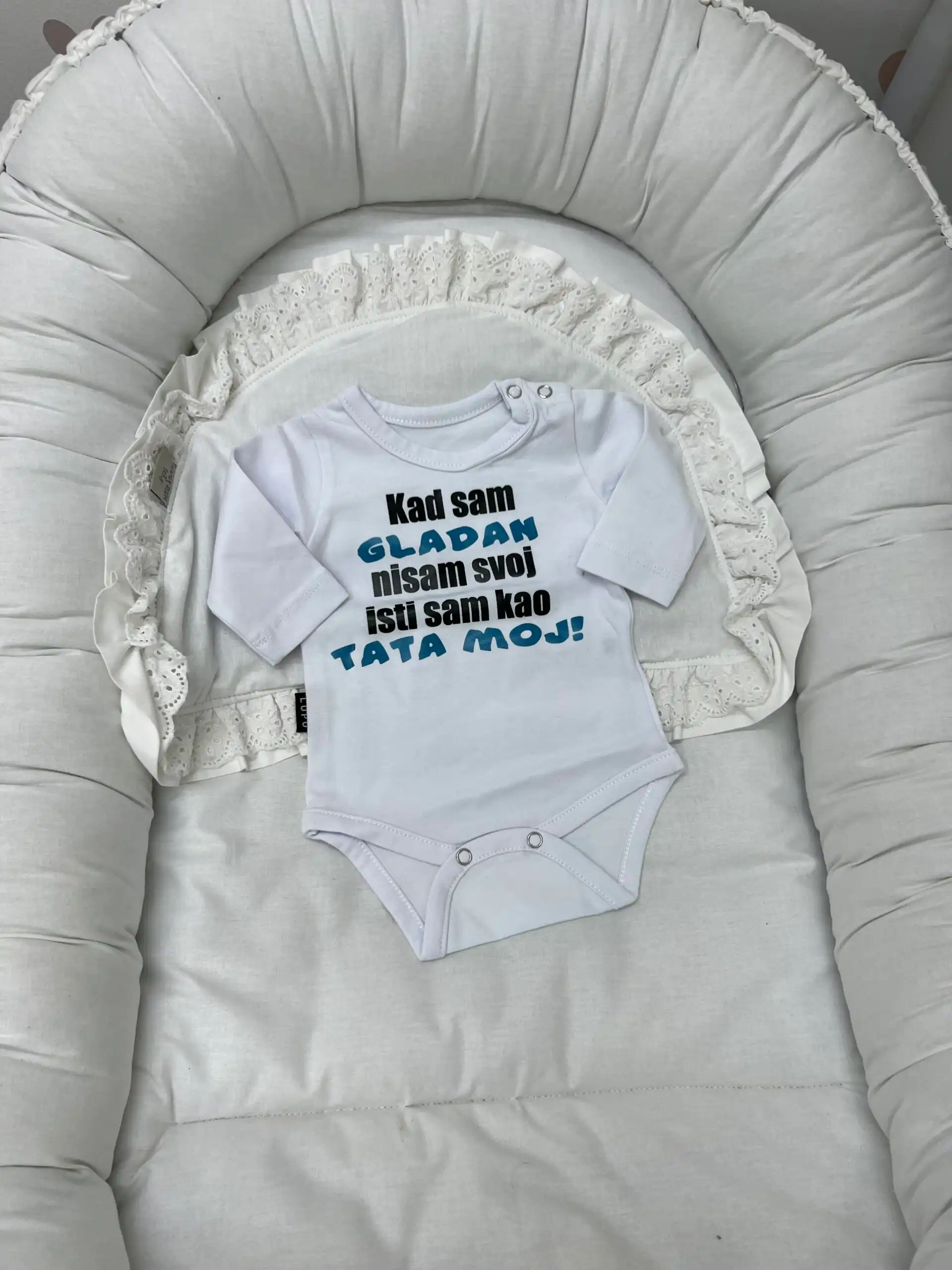 Pamučni bodi sa natpisom izrađen je od kvalitetnog, mekanog pamuka koji je nežan prema bebinoj osetljivoj koži. Praktičan kroj omogućava lako oblačenje i presvlačenje, dok simpatičan natpis daje poseban i razigran izgled. Idealan je za svakodnevne kombinacije i lako se uklapa uz pantalone, helanke i trenerkice. 🧸🌿 Sastav : 100% pamuk Proizvođač: M&A Kvalitet kontrolisao: Vulin DOO, Leskovac Održavanje: u skladu sa deklaracijom koja se nalazi na proizvodu