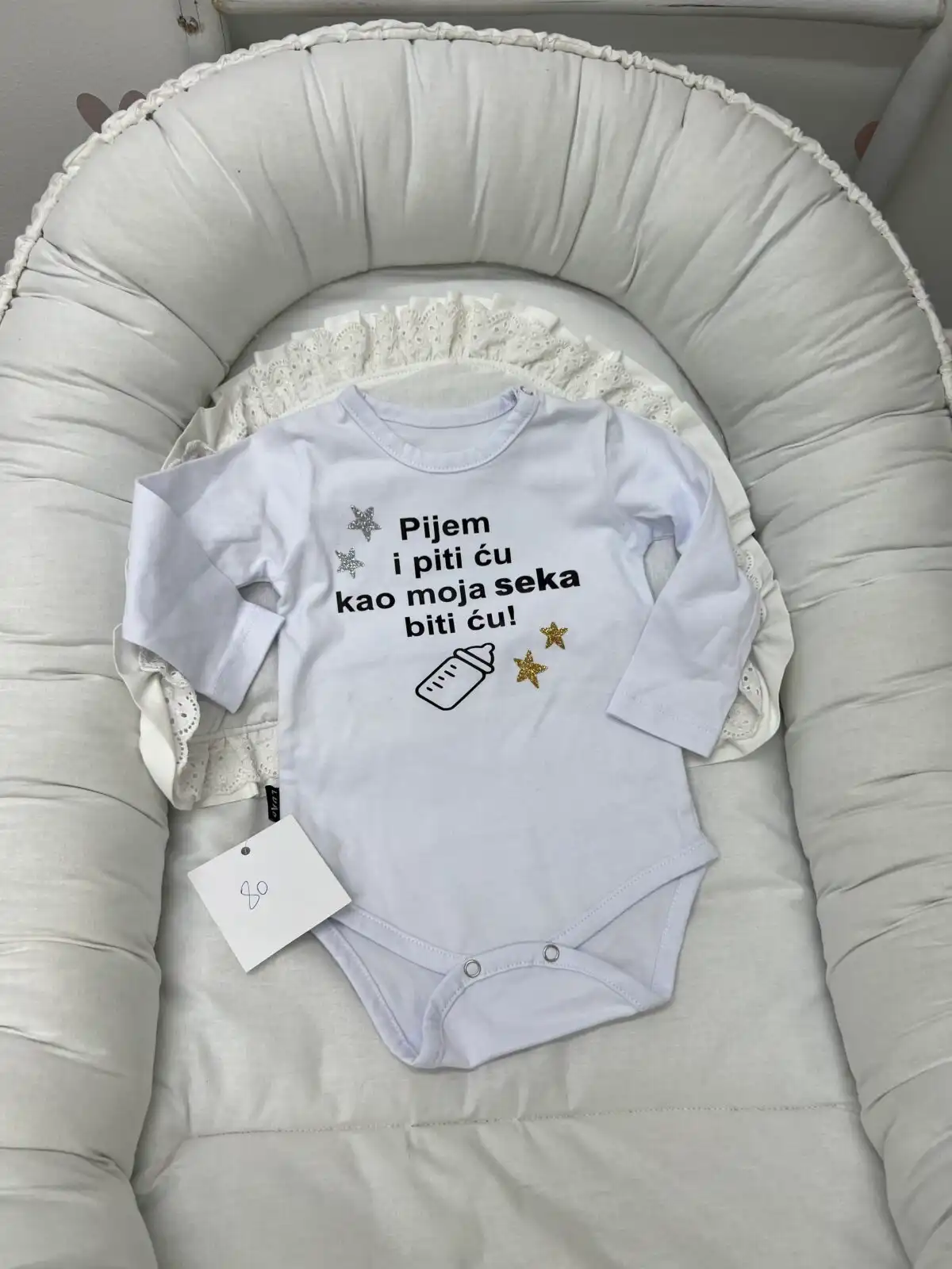 Pamučni bodi sa natpisom izrađen je od kvalitetnog, mekanog pamuka koji je nežan prema bebinoj osetljivoj koži. Praktičan kroj omogućava lako oblačenje i presvlačenje, dok simpatičan natpis daje poseban i razigran izgled. Idealan je za svakodnevne kombinacije i lako se uklapa uz pantalone, helanke i trenerkice. 🧸🌿