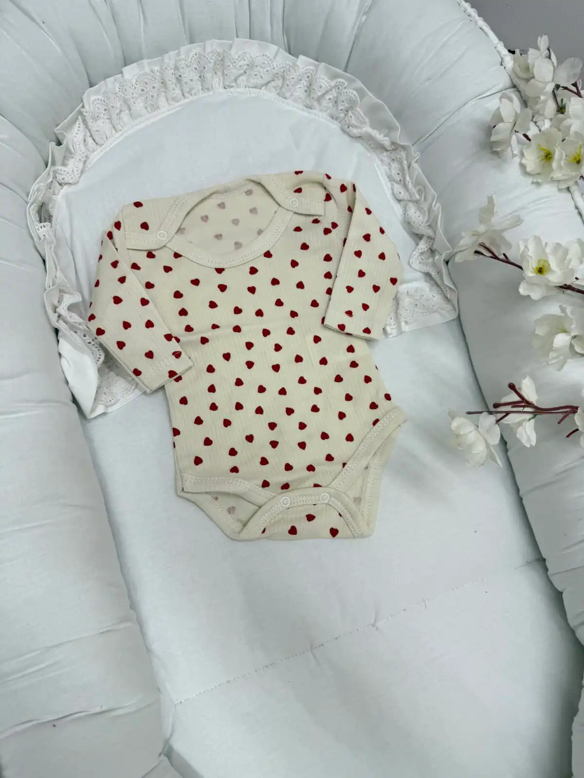 Bodi za bebe -Bež sa crvenim srcima