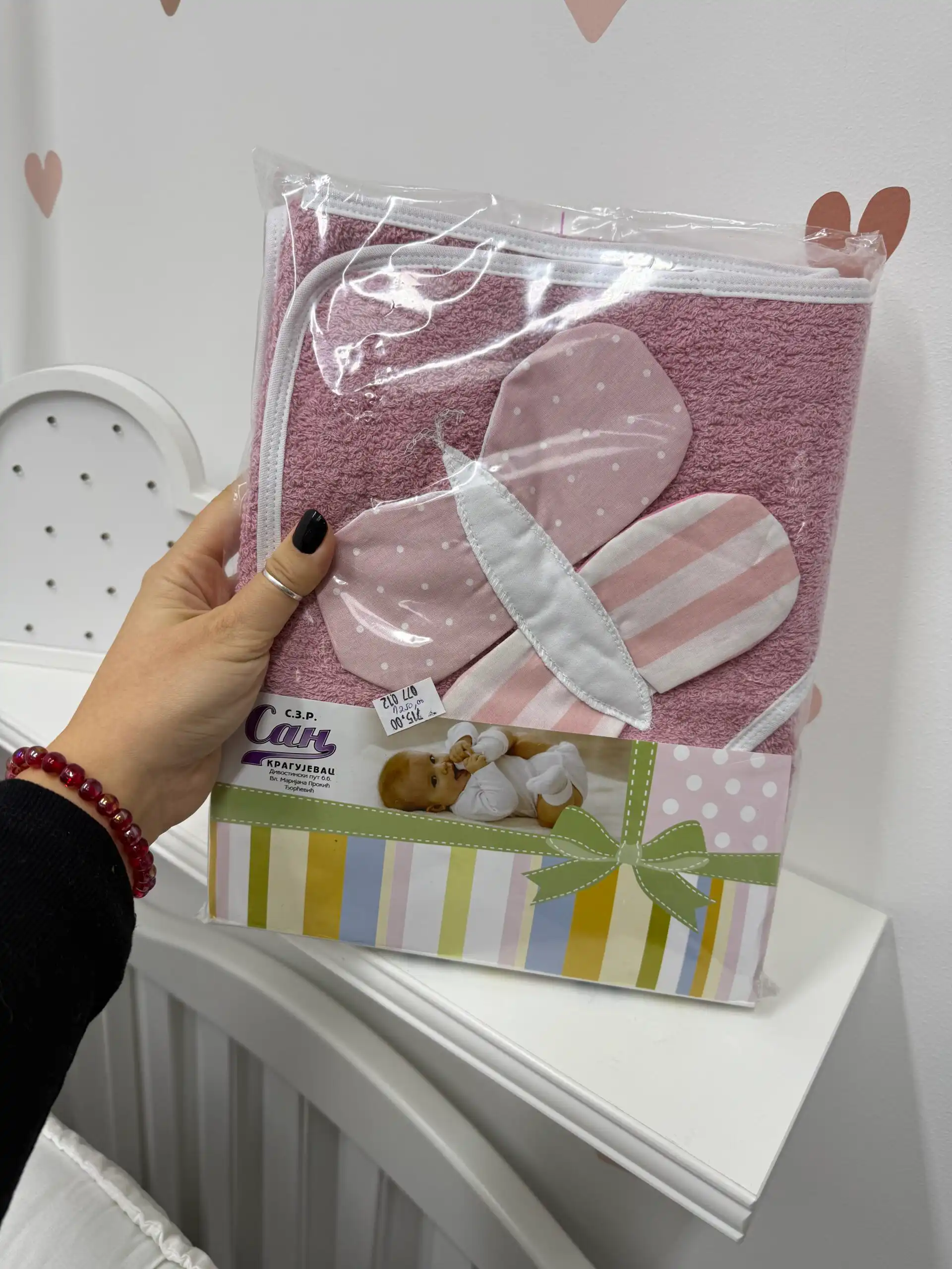 Set peškir sa kapuljačom + portikla – puder roze leptir