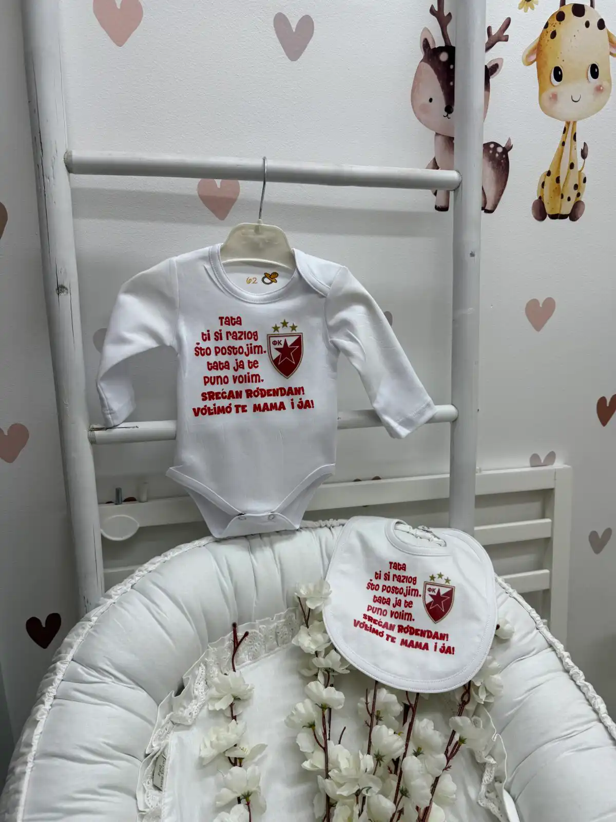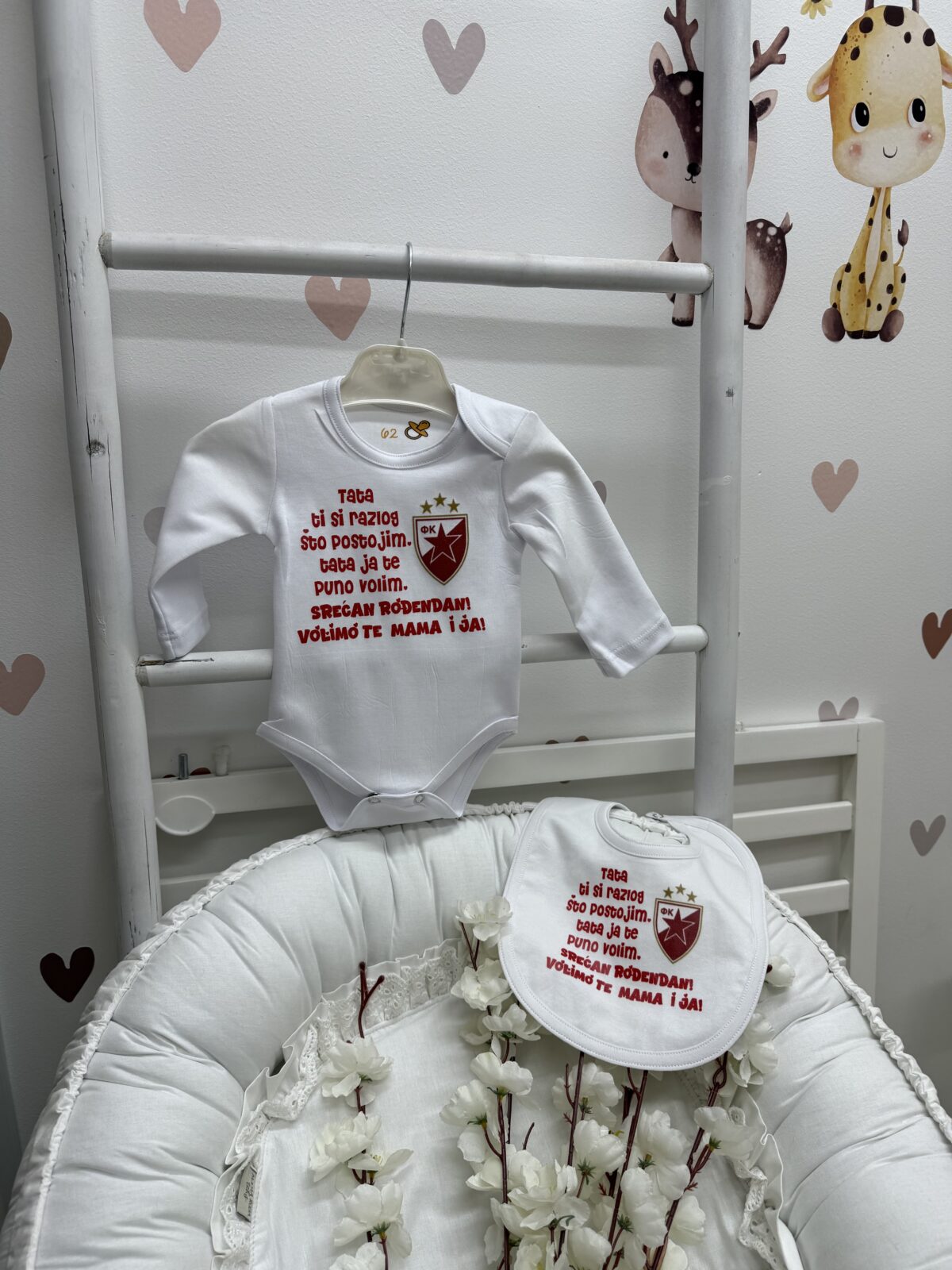 Obeležite tatin rođendan na najslađi način sa bodićem koji ima motiv Crvene Zvezde! Savršen za mališane koji žele da pokažu koliko vole svog tatu na njegov poseban dan. S natpisom „Za tatin rođendan“ i motivom Crvene Zvezde, ovaj bodić je sjajan način da mali dečko nosi ponos i ljubav prema svom tati.