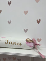 Ovaj mekani jastučić može poslužiti kao pozicioner za bebu, ali je ujedno i prelep detalj u dečjoj sobi. Sa dodatkom imena po vašoj želji, postaje jedinstven i poseban poklon.