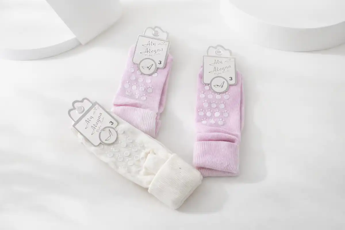 Mekane i nežne čarape za bebe napravljene su većinski od pamuka, što omogućava koži da diše i pruža maksimalnu udobnost tokom celog dana 🌿 Rastegljiv materijal osigurava lako oblačenje i lepo prijanjanje bez stezanja, pa su idealne i za najosetljivija stopala 🤍