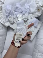 Bele mekane i udobne čarapice za bebe sa nežnom čipkom dodaju poseban šarm svakoj odevnoj kombinaciji . Napravljenje od visokokvalitetnog pamuka, ove čarapice pružaju maksimalnu udobnost i toplinu malim nožicama, dok je čipka elegantan detalj koji im daje posebnu nežnost i sofisticiranost . Savršen izbor za svaki dan, ove čarapice ne samo da su praktične, već i dodaju na stilu, bilo da je u pitanju svakodnevno nošenje ili posebna prilika .