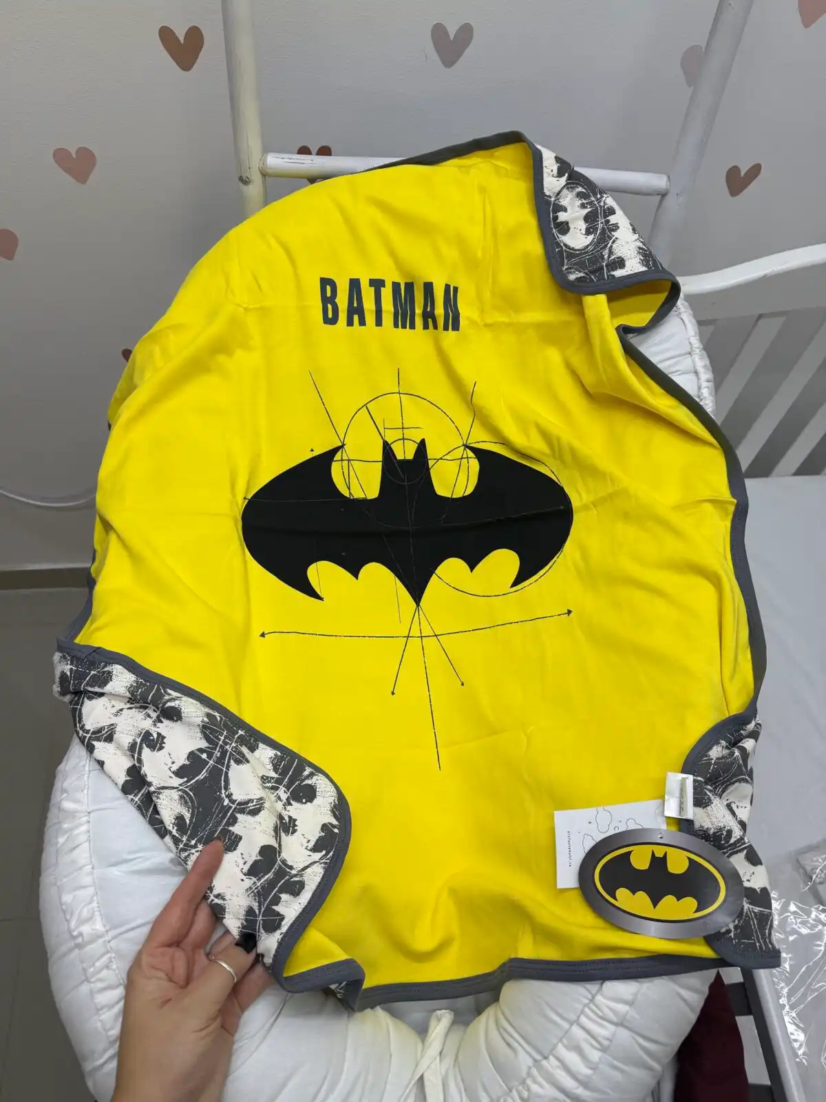 Pamučni dvostrani prekrivač za bebe i decu sa motivom Batmana 🦇 izrađen od 100% interlok pamuka. Mekan, prijatan i praktičan za svakodnevnu upotrebu u krevecu, kolicima ili tokom odmora.