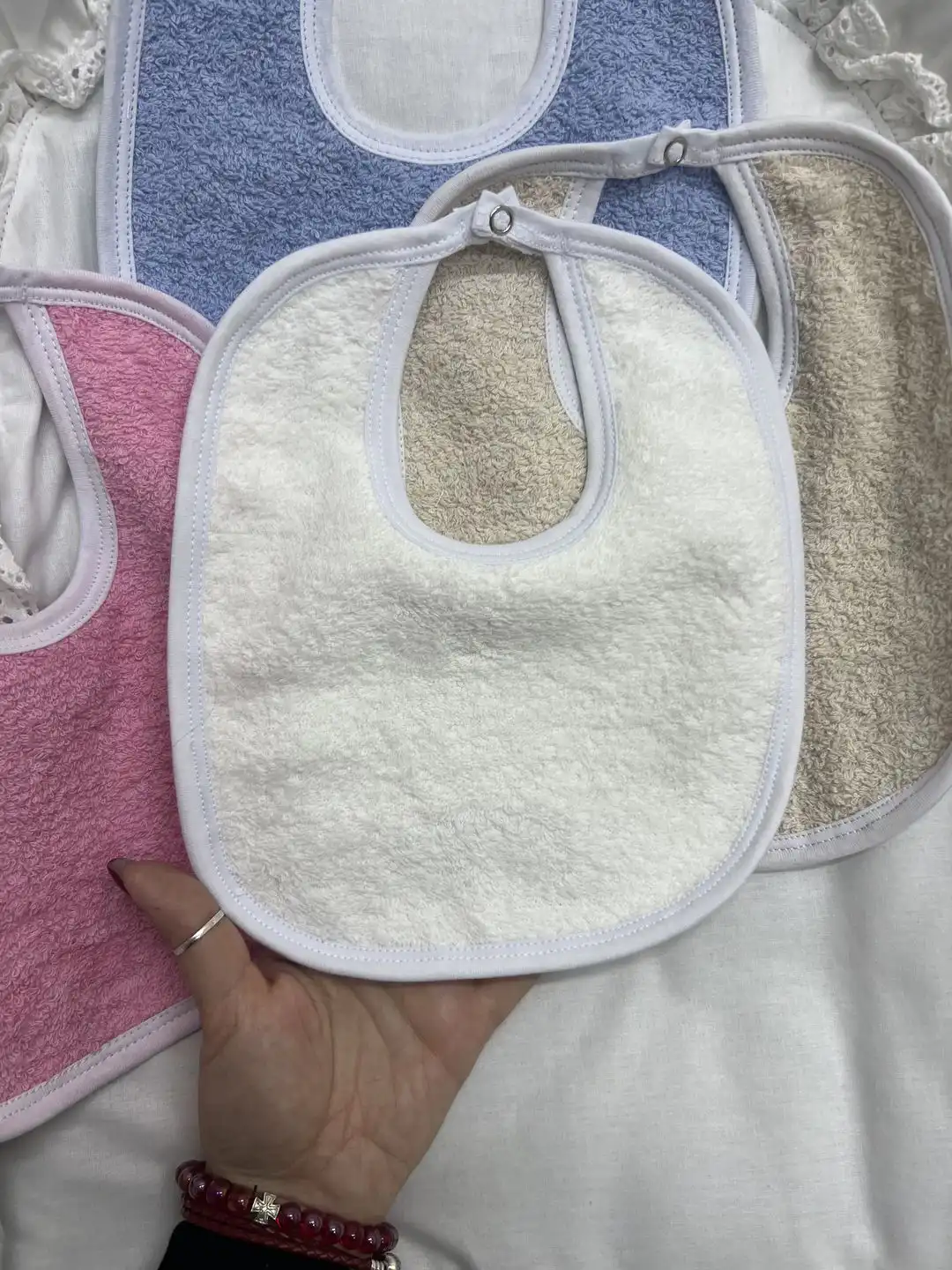 Ova praktična i udobna frotirska portikla u beloj boji savršen je izbor za zaštitu vaše bebe tokom obroka. Jedna strana je od mekanog pamuka, nežna prema bebinoj koži, dok je druga strana izrađena od PVC materijala, koji je vodootporan i omogućava lako čišćenje.