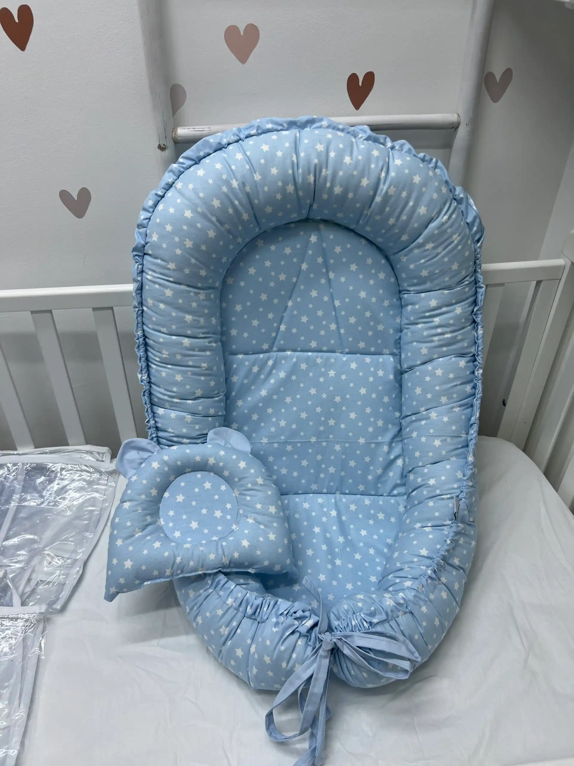 Gnezdo za bebe je praktično i udobno rešenje koje pruža osećaj sigurnosti i ušuškanosti tokom prvih meseci bebinog života 🤍 Dizajnirano je tako da imitira toplinu i bliskost koju beba ima u maminom stomaku, što doprinosi mirnijem snu i opuštanju.