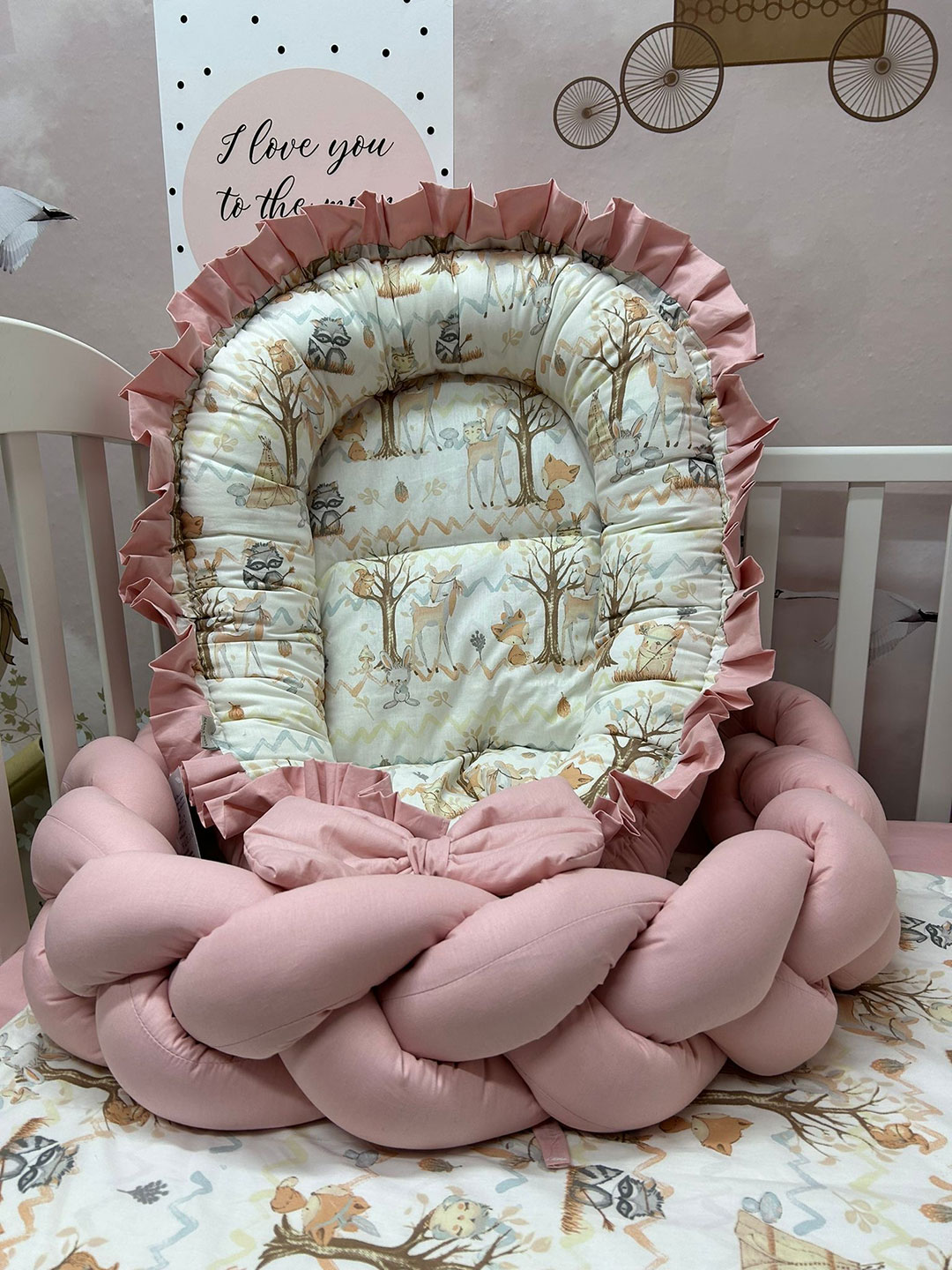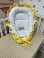 Gnezdo – prenosivi, sigurni i ušuškani kutak za vaše najmilije. Gnezdo na vezivanje ima dužinu ležišta oko 70 cm, ali malo gubi na dužini kada se veže. Predviđeno je da ga beba koristi do 6 meseci, nakon toga se odveže i nastavi da ga koristi tako odvezano.