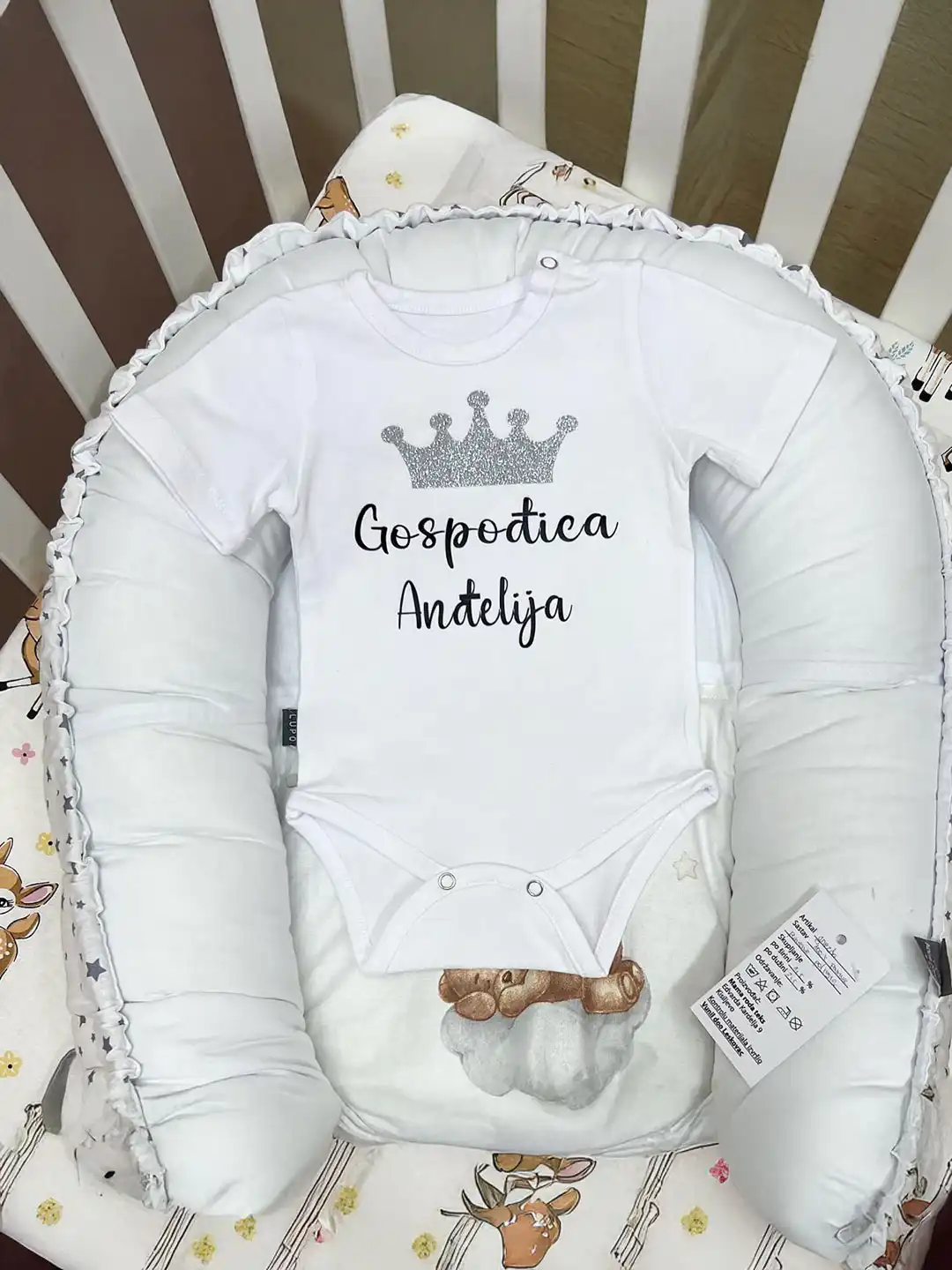 Uz svoj prefinjeni dizajn i šljokičastu krunu ✨, bodić je savršen za posebne prilike i nezaboravne fotografije. 💕 Praktikovan i udoban za nošenje, idealan je izbor za svaki dan! 🍼