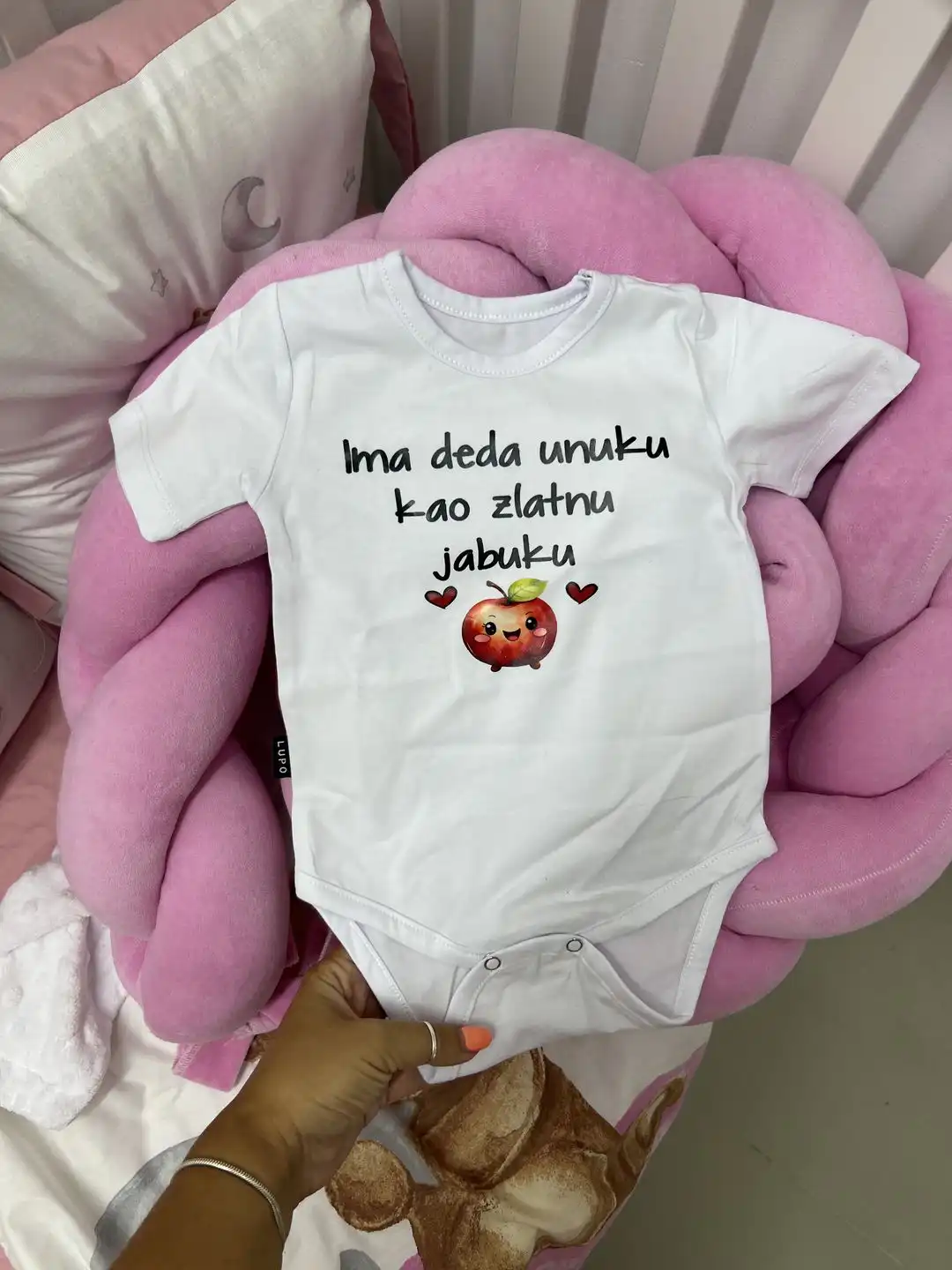 Neka vaša beba ponosno nosi najslađu poruku koja odražava posebnu vezu između dede i unuke! Naš bodić sa natpisom „Ima deda unuku kao zlatnu jabuku” savršen je način da pokažete koliko je ta veza snažna, nežna i puna ljubavi. Ovaj simpatični bodić nije samo udoban, već i emotivan, jer ističe ljubav koju deda oseća prema svojoj unuci.