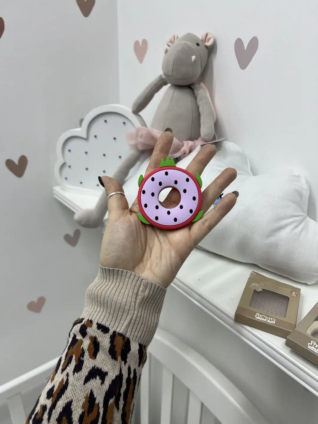 Silikonska Jungle Fruity glodalica idealna je za period rasta bebinog zubića, kada beba postaje razdražljiva i nervozna. Raznovrsne teksture glodalice nežno stimulišu desni, olakšavajući bol i donoseći potrebnu utehu.Bebe u ovom uzrastu često grickaju sve što im se nađe u rukama, pa je odlično imati ovu glodalicu pri ruci. Napravljen je od 100% sigurnog silikona, bez bisfenola, tako da možete biti sigurni u bezbednost za vašu bebu. Oblik glodalice je dizajniran za male bebine ruke, omogućujući lako hvatanje i držanje. Voćkasti dodaci su mekši i vazdušasti u odnosu na obruč, što pruža različite teksture i dodatnu stimulaciju bebinim čulima.