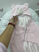 Mekano ćebence sa kapuljačom i motivom mede je savršen za ususkane snove i setnjice . Sa praktičnim čičak zatvaranjem, ovo ćebence omogućava da beba bude ušuškana i udobna, baš kao u dunjici . Na leđima se nalaze mekana krila koja dodaju dodatnu nežnost i šarm, a kapuljača pruža toplinu i zaštitu. Idealno za hladne dane, ovo ćebence je savršen izbor za nežne trenutke u kojima vaša beba može mirno da spava ili se opušta u šetnji .