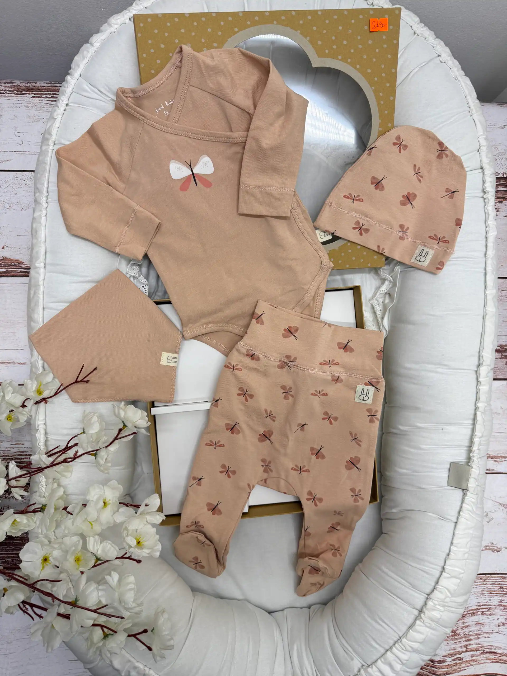 Set sadrži četiri pažljivo uklopljena komada garderobe koji zajedno čine savršenu kombinaciju funkcionalnosti i nežnog dizajna 👶✨ Svaki detalj je promišljeno urađen – od krojeva koji omogućavaju slobodu pokreta, do prijatnih šavova i lakoće oblačenja 🤍