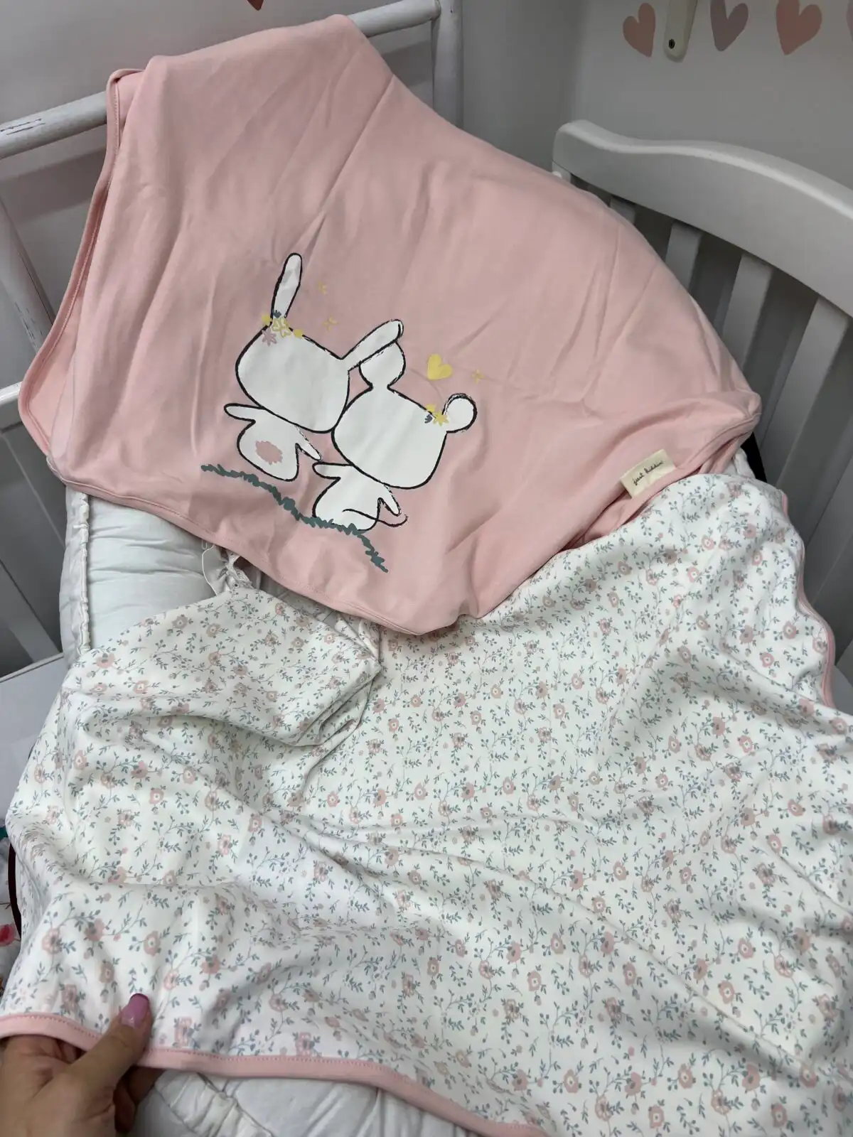 Just kiddin prekrivač 2 u 1 – roze zeke i cveće