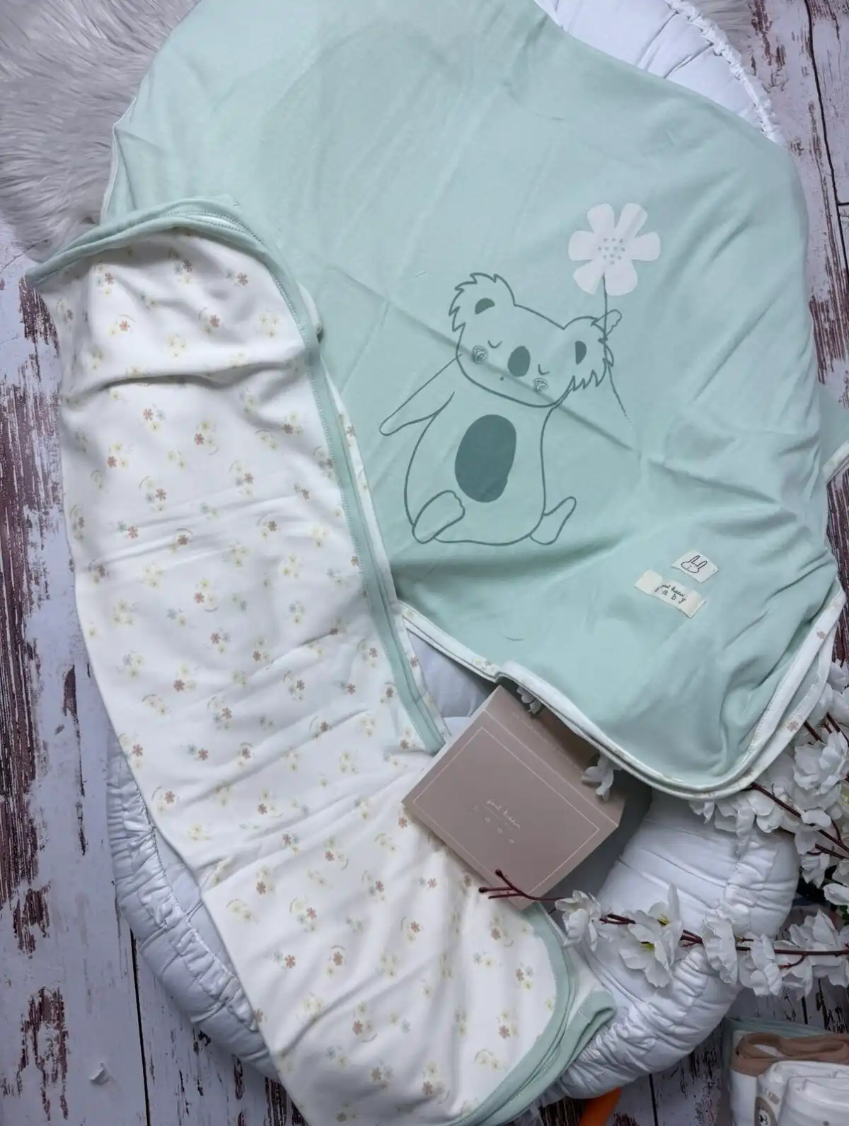 Just kiddin prekrivač 2 u 1 – zelena panda i cveće