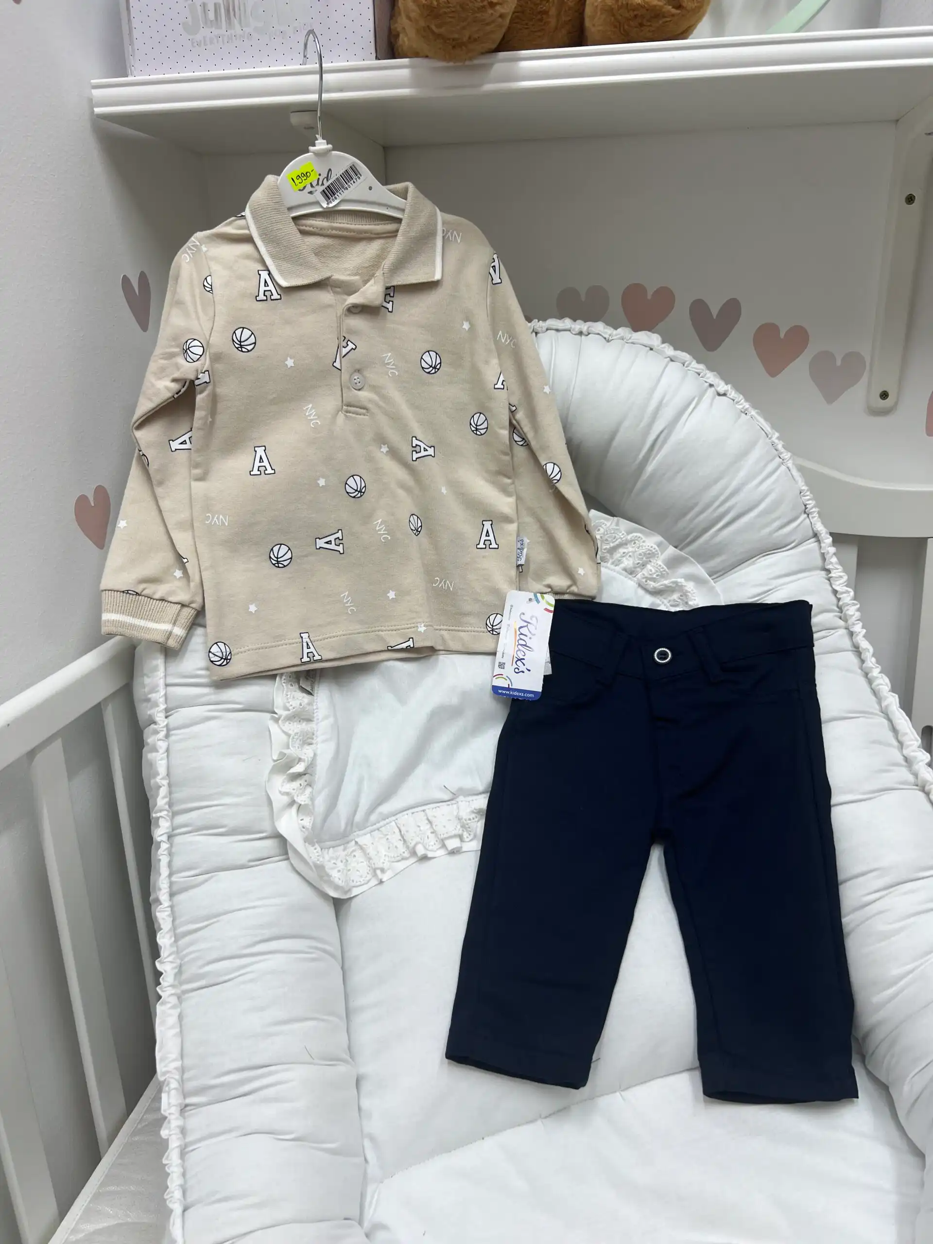 Ovaj dvodelni komplet za dečake, koji čine bluzica sa polo kragnom i udobne pantalone, predstavlja savršen spoj elegancije i komfora. Izrađen od kvalitetnog pamuka, set je nežan prema koži, prozračan i prijatan za nošenje tokom celog dana 🌿