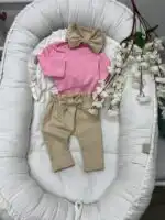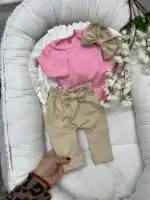 Napravljen od mekanog i prijatnog pamuka, ovaj komplet je idealan za svakodnevno nošenje, igru, šetnje i posebne porodične trenutke. Materijal je nežan prema osetljivoj bebinoj koži, omogućava koži da diše i pruža maksimalnu udobnost tokom celog dana 🌿👶Praktičan kroj omogućava lako oblačenje i skidanje, dok kvalitetna izrada obezbeđuje dugotrajnost i postojanost i nakon više pranja.