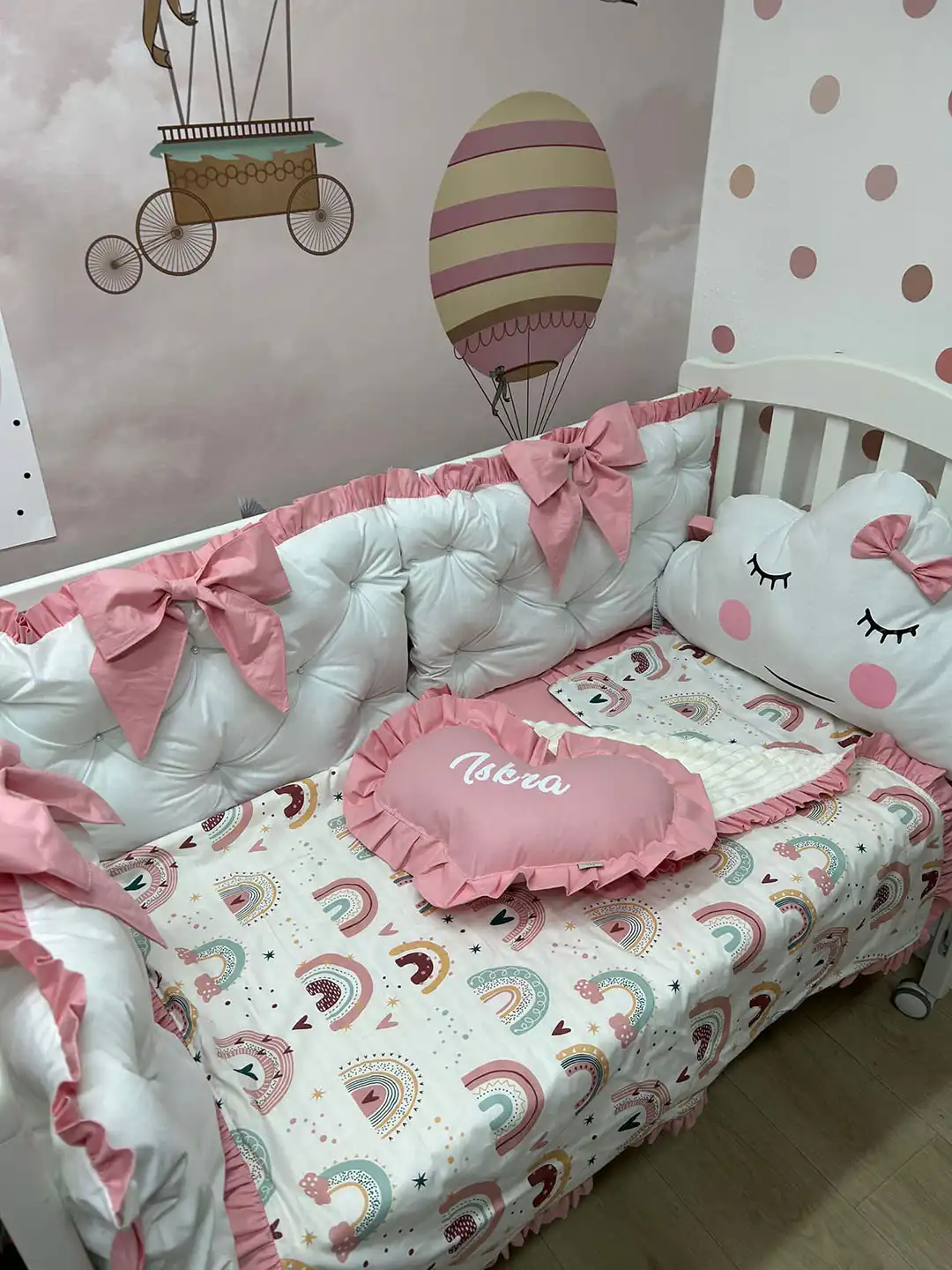 Sa mnogo pažnje i ljubavi, svaki detalj posteljine Iskra doveden je do savršenstva – baš onako kako bi trebalo da izgleda mesto prvih snova vaše bebe. Prodaje se isključivo u kombinaciji prikazanoj na slici, jer verujemo da ne treba menjati ono što već odiše nežnošću i toplinom.