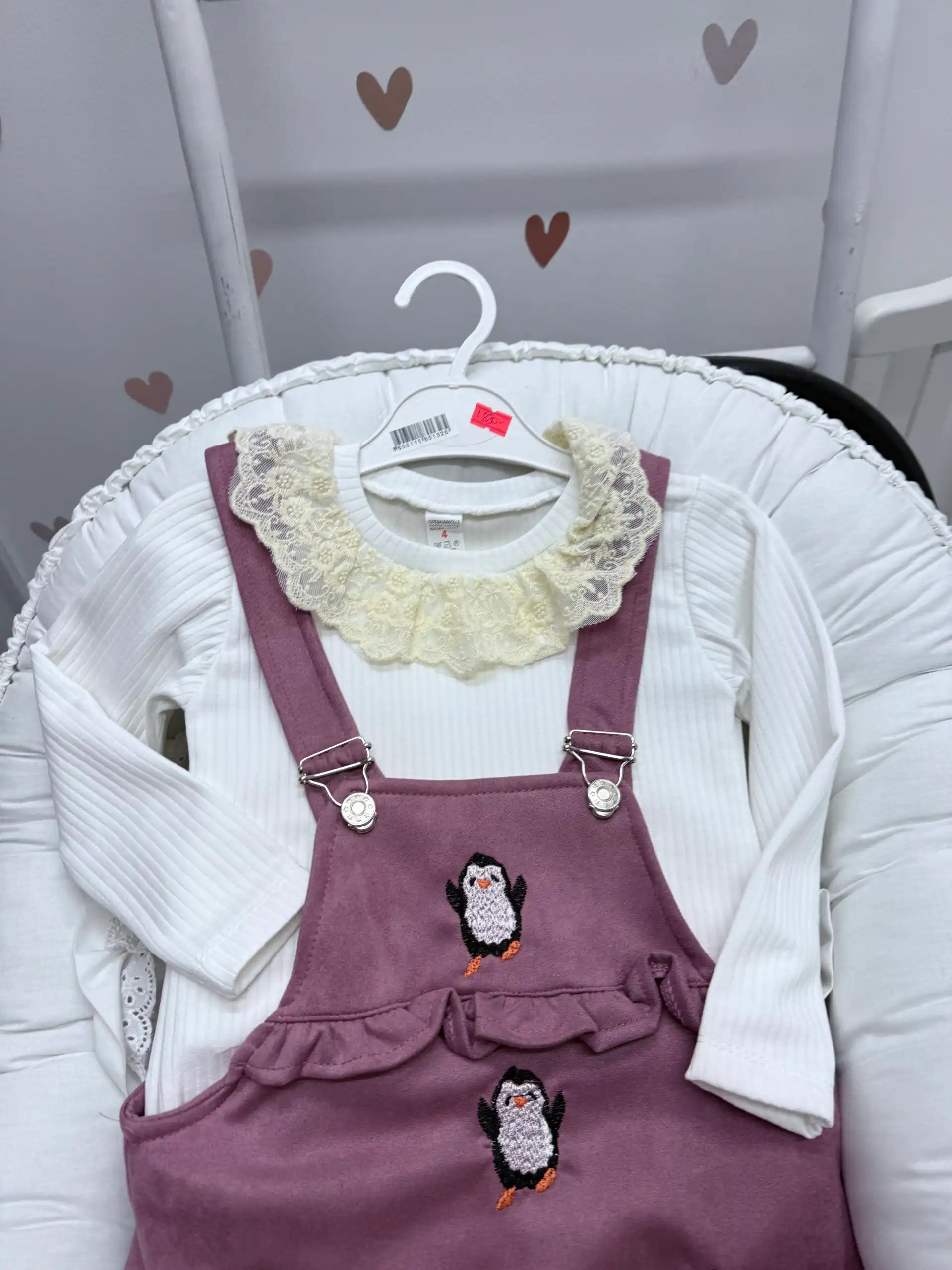 Komplet za devojčice – bluza + suknja na tregere – pingvin