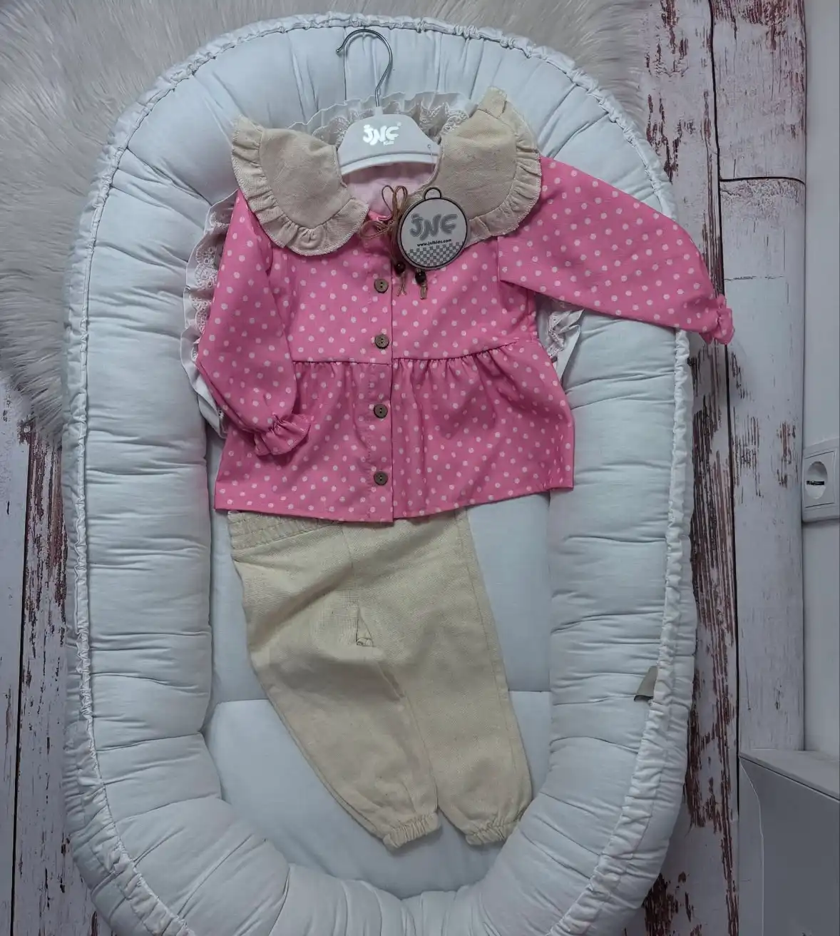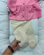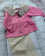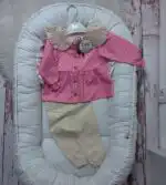 Predstavljamo presladak kompletić za devojčice u nežnoj roze boji sa tufnicama, izrađen od 100% pamuka – savršen za udobnost i stil vaših malih princeza!