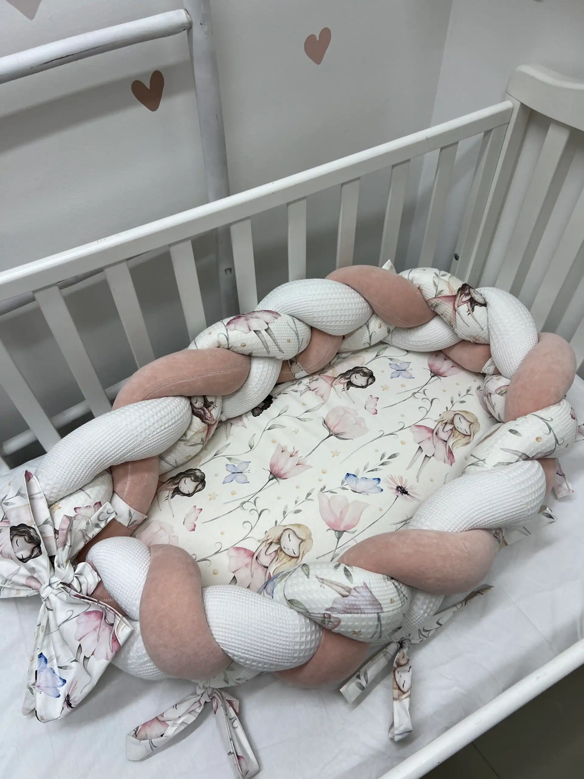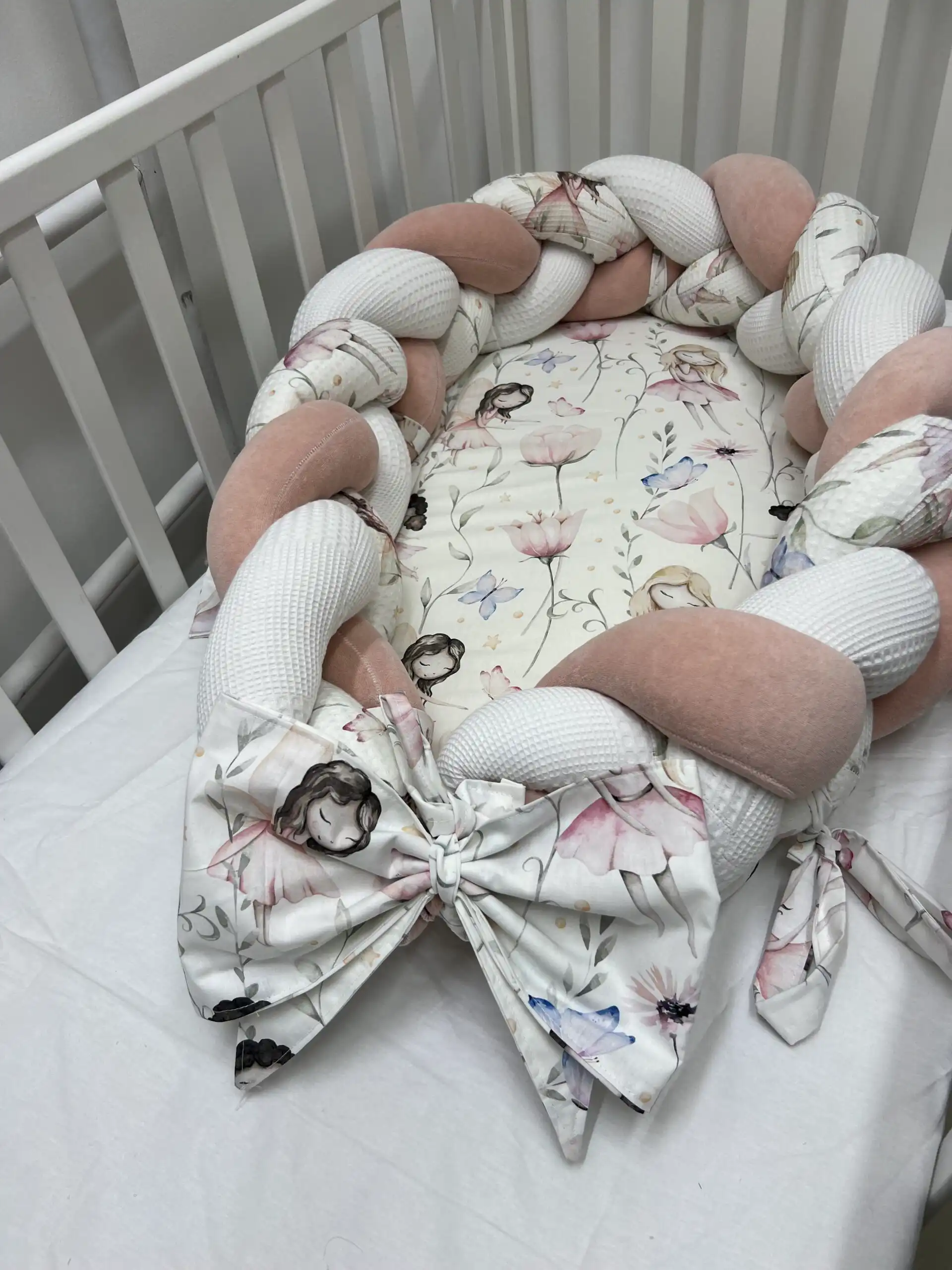 Gnezdo za bebe sa podlogom i odvojivom pletenicom, izrađeno u kombinaciji pliša i waffle pamuka 🤍👶