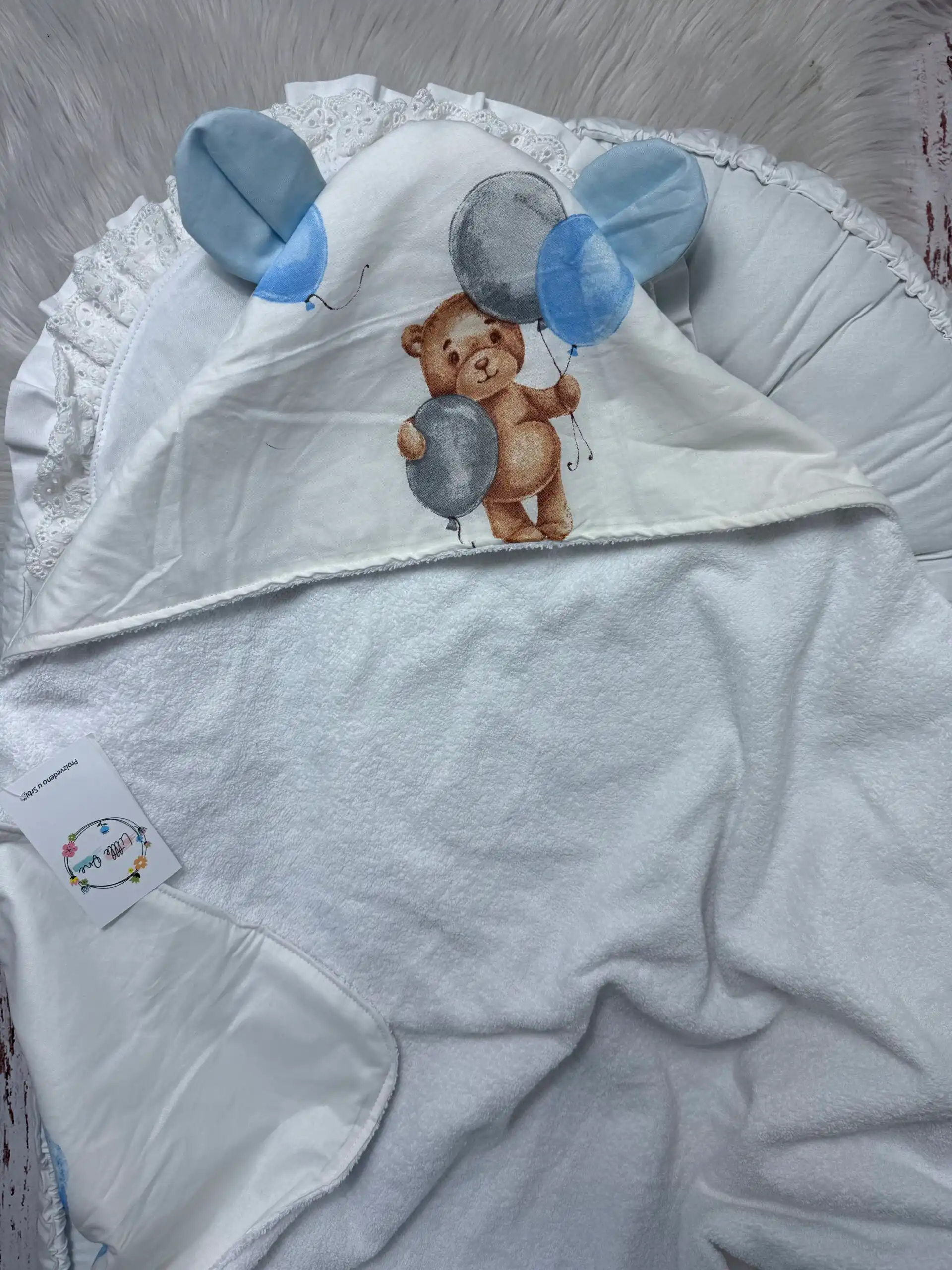 Kapuljača sa ušima dodaje šarmantnu notu, dok će beba uživati u toplini i mekoći ovog prelepog peškira. 🐰💫 Udoban, praktičan i slatkog dizajna, peškirić je savršen poklon za mališane!