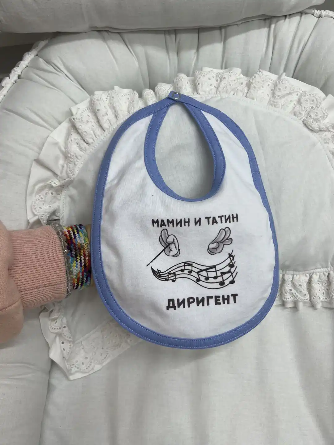 Neka vaša beba postane prava zvezda sa portiklom „Mamin i tatin dirigent”! Ovaj simpatični natpis pokazuje da je vaša mala prinčeza ili princ upravo taj koji drži ritam u porodici.