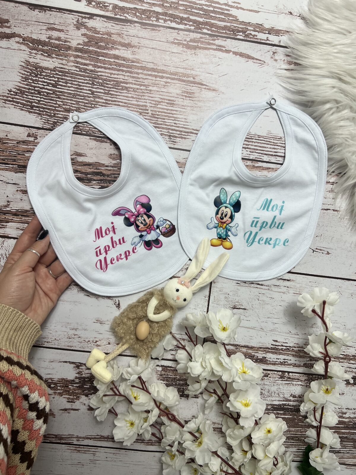 Savršen poklon za najposebniji prvi Uskrs! Ove portikle sa simpatičnim Miki i Mini Mausom i preslatkim natpisom donose mnogo radosti i ljubavi.