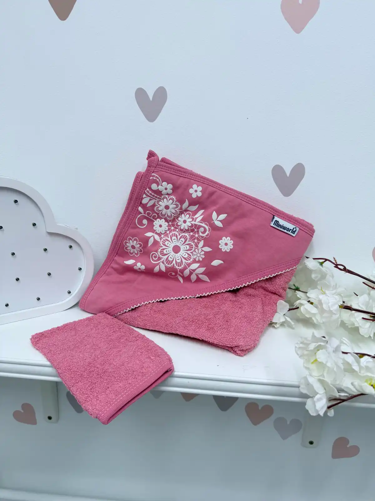 Miniworld peškir + rukavica – tamno puder roze