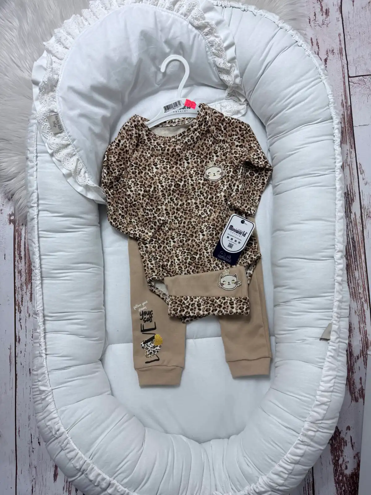 Ovaj set je savršen izbor za vašu bebu! Sastoji se od bodića sa modernim životinjskim printom, koji je u potpunosti izrađen od mekanog i prijatnog pamuka, što garantuje udobnost tokom celog dana. Donji deo je u skladu sa bodićem, sa iste boje i printom, a tu je i matching kapica koja zaokružuje celokupni izgled.