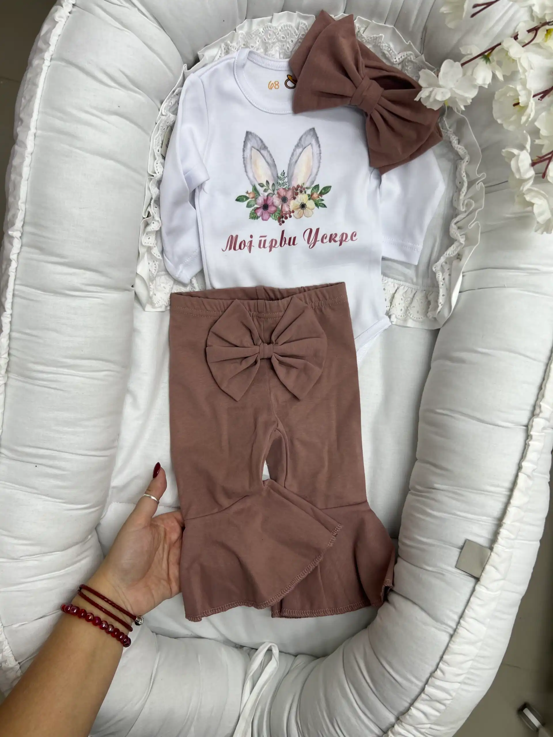 Moj prvi Uskrs kompletić sa braon zvonaricama i trakicom – Komplet :)