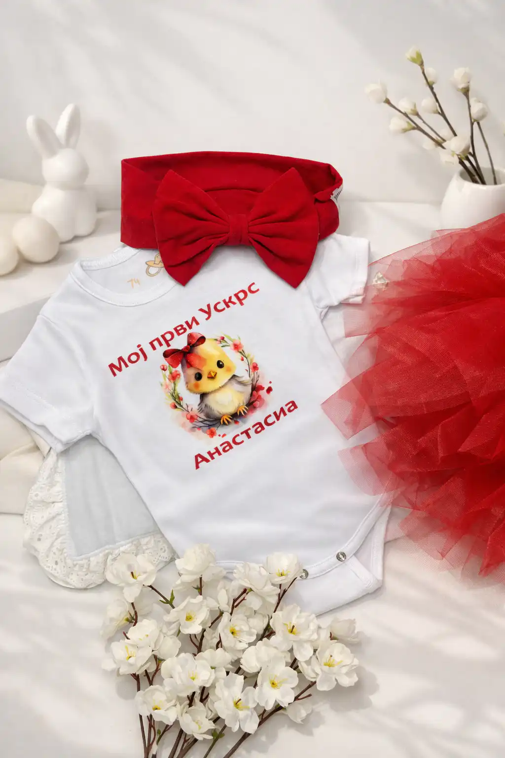 Da upotpuni i obeleži prvi Uskrs male princeze, tu je naš pamučni bodić za Uskršnjim motivom.