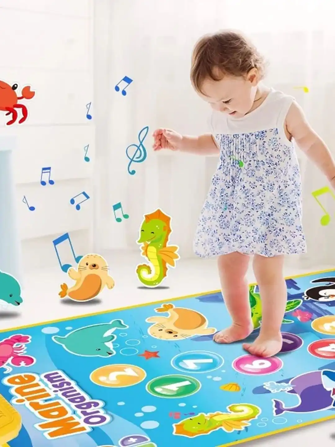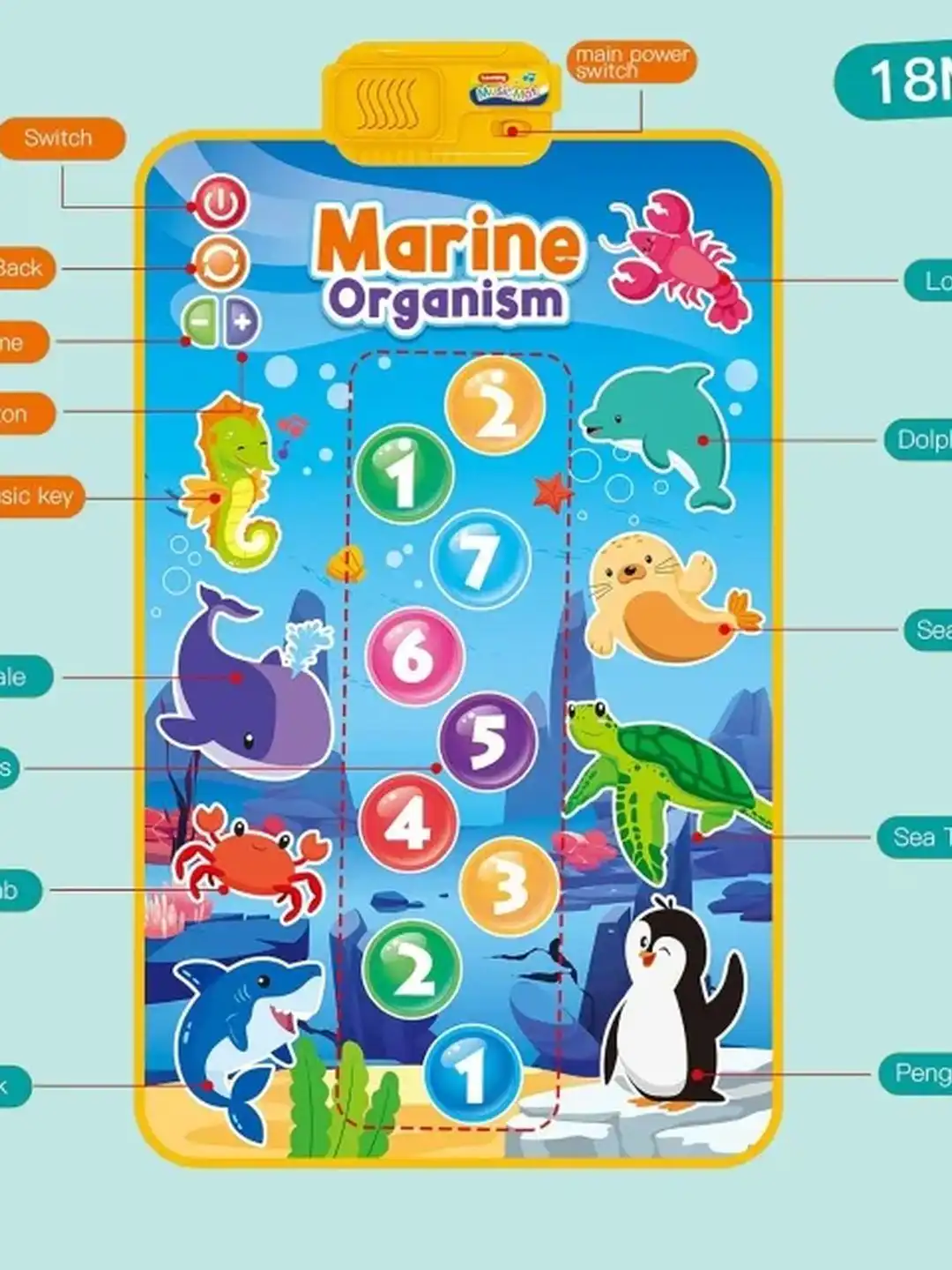 Multifunkcionalna muzička podloga za igru sa zvučnim tasterima savršen je način da vaša beba stvori muziku dok se zabavlja! Ova velika prostirka omogućava bebama i njihovim prijateljima da uživaju u igri, a pritiskanjem različitih tastera razvijaju koordinaciju i krupnu motoriku. Dok pritiska podlogu, beba uči odnos uzrok-posledica, prepoznaje zabavne zvuke morskih životinja i stvara melodije pritiskom na muzičke note. Devet muzičkih tonova i devet zvukova morskih životinja stimulišu bebin sluh, dok jarke boje i slike podstiču razvoj vizuelne percepcije. Ova podloga takođe pomaže u razvoju društvenih veština kroz igru u društvu. Podloga je vrlo praktična – lako se čisti i održava, a idealna je za bebi gimnastiku koja podstiče razvoj motorike, posebno u prvoj godini života. Uz zabavu, beba pravi velike telesne pokrete, stimulišući svoja čula vida, dodira i zvuka.