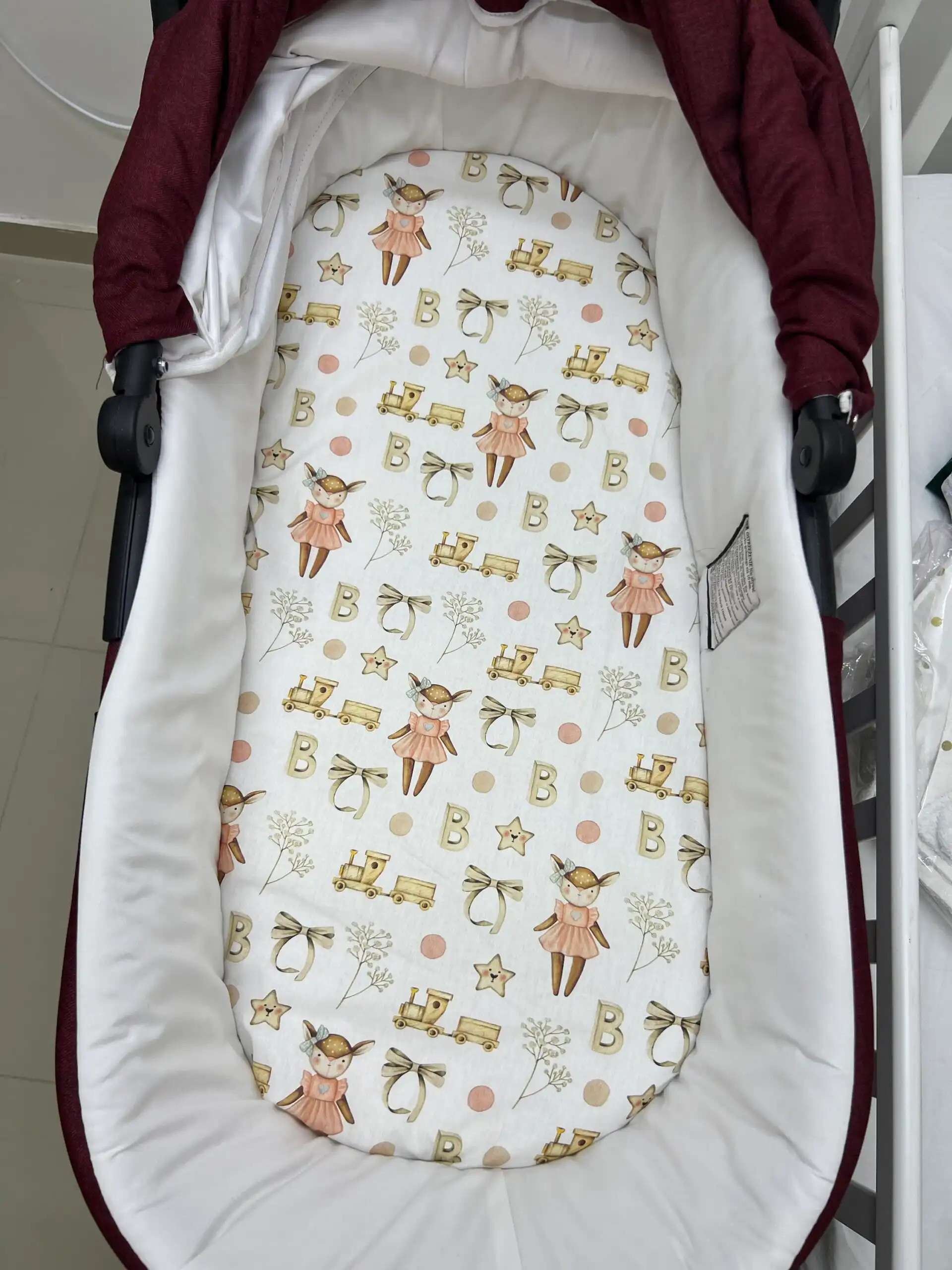 Navlaka za jastuče koje se nalazi u delu kolica koji je kao kolevka – dizajnirana da pruži dodatnu udobnost.Deo na kom beba leži svakako je uvek od 100% pamuka, kako bi nežna koža bila u dodiru sa prirodnim materijalom. Praktična za skidanje i održavanje, navlaka čuva jastuče od fleka i svakodnevne upotrebe, a ujedno unosi i dašak stila u vaša kolica.