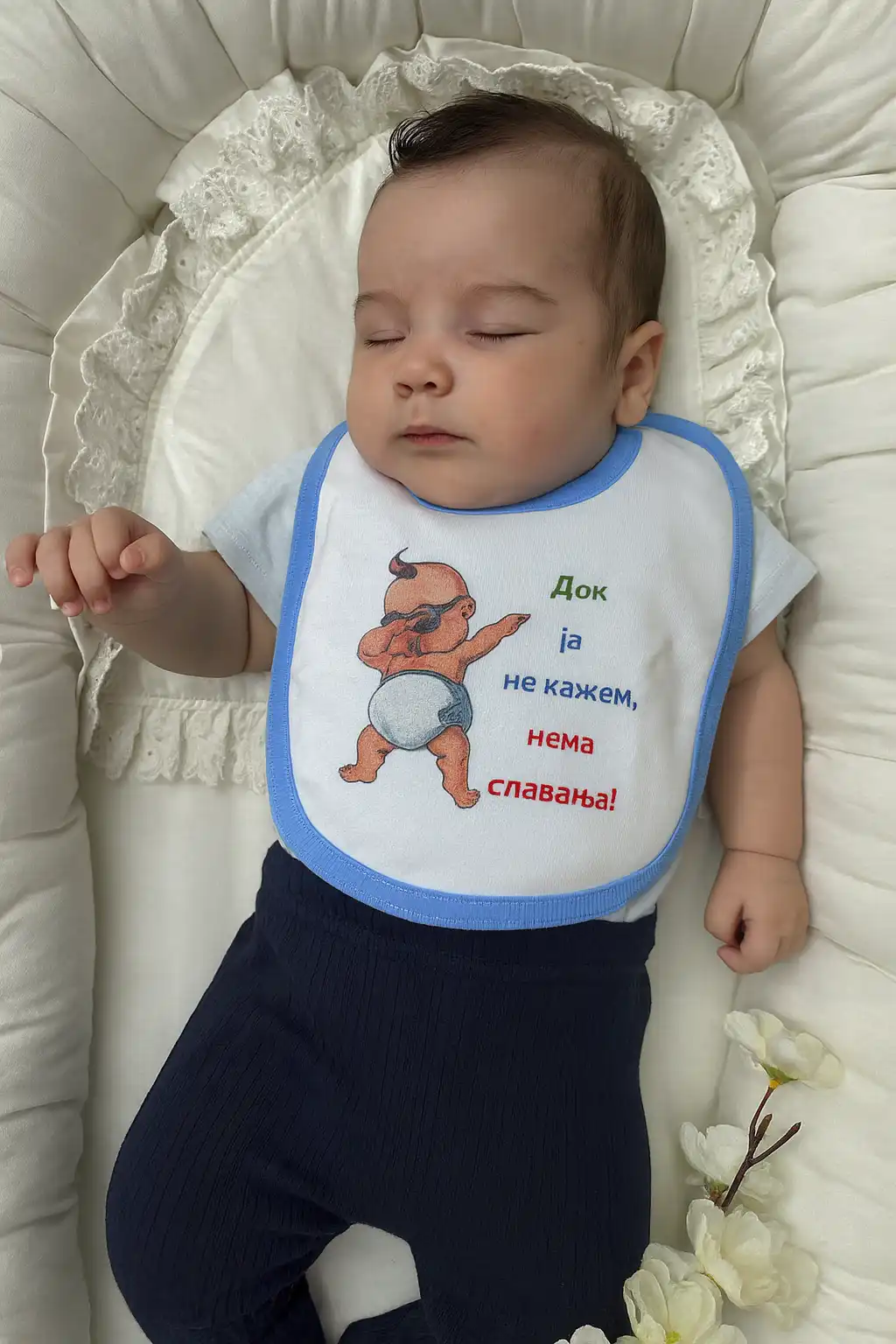 Pamučna portikla sa natpisom “Dok ja ne kažem – nema spavanje” savršen je spoj praktičnosti i humora koji će izmamiti osmeh svima oko vaše bebe 😄🍼 Napravljena je od kvalitetnog i mekanog pamuka koji je nežan prema osetljivoj koži, omogućava koži da diše i pruža maksimalnu udobnost tokom celog dana. Idealan je izbor za svakodnevno nošenje – štiti odeću tokom hranjenja, balavljenja i igre, a istovremeno izgleda preslatko i upečatljivo zahvaljujući zabavnom natpisu. Jednostavno kopčanje omogućava brzo oblačenje i skidanje, što roditeljima olakšava svakodnevnu rutinu. Ova portikla nije samo praktičan dodatak već i simpatičan detalj koji naglašava bebin karakter i čini je odličnim poklonom za novorođenče ili baby shower 🎁👶