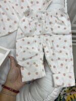 Ovaj prelepi komplet za devojčice uključuje benkicu na tufnice sa simpatičnom kragnicom, idealan za svakodnevne aktivnosti ili posebne prilike. Benkica je mekana, udobna i nežna prema koži, dok tufnice dodaju veselo i veselo na izgled. Kragnica dodaje šarmantan detalj, čineći outfit još elegantnijim. Komplet dolazi u kutiji, što ga čini savršenim za poklon. Savršen izbor za devojčice koje vole da se oblače sa stilom!