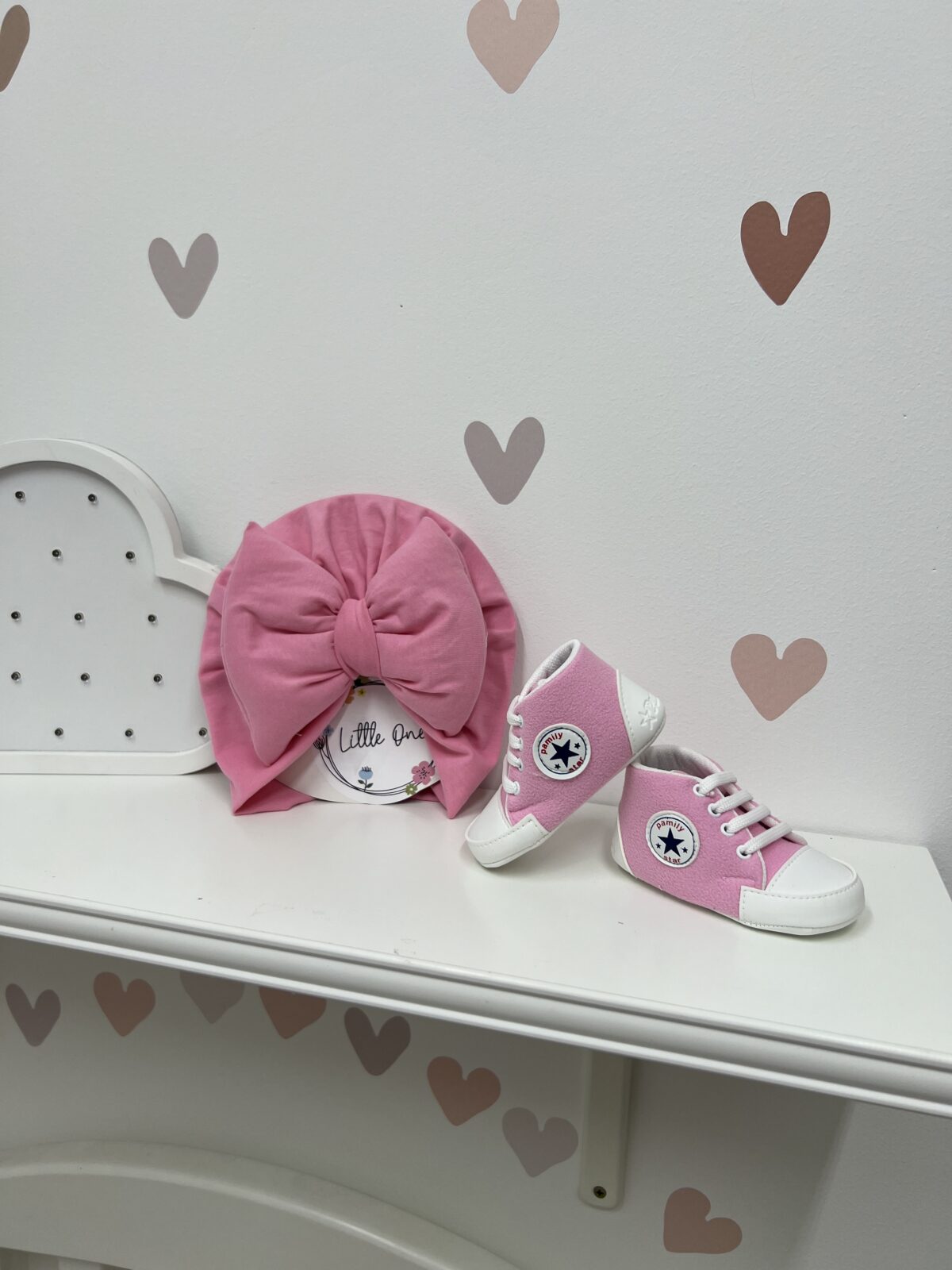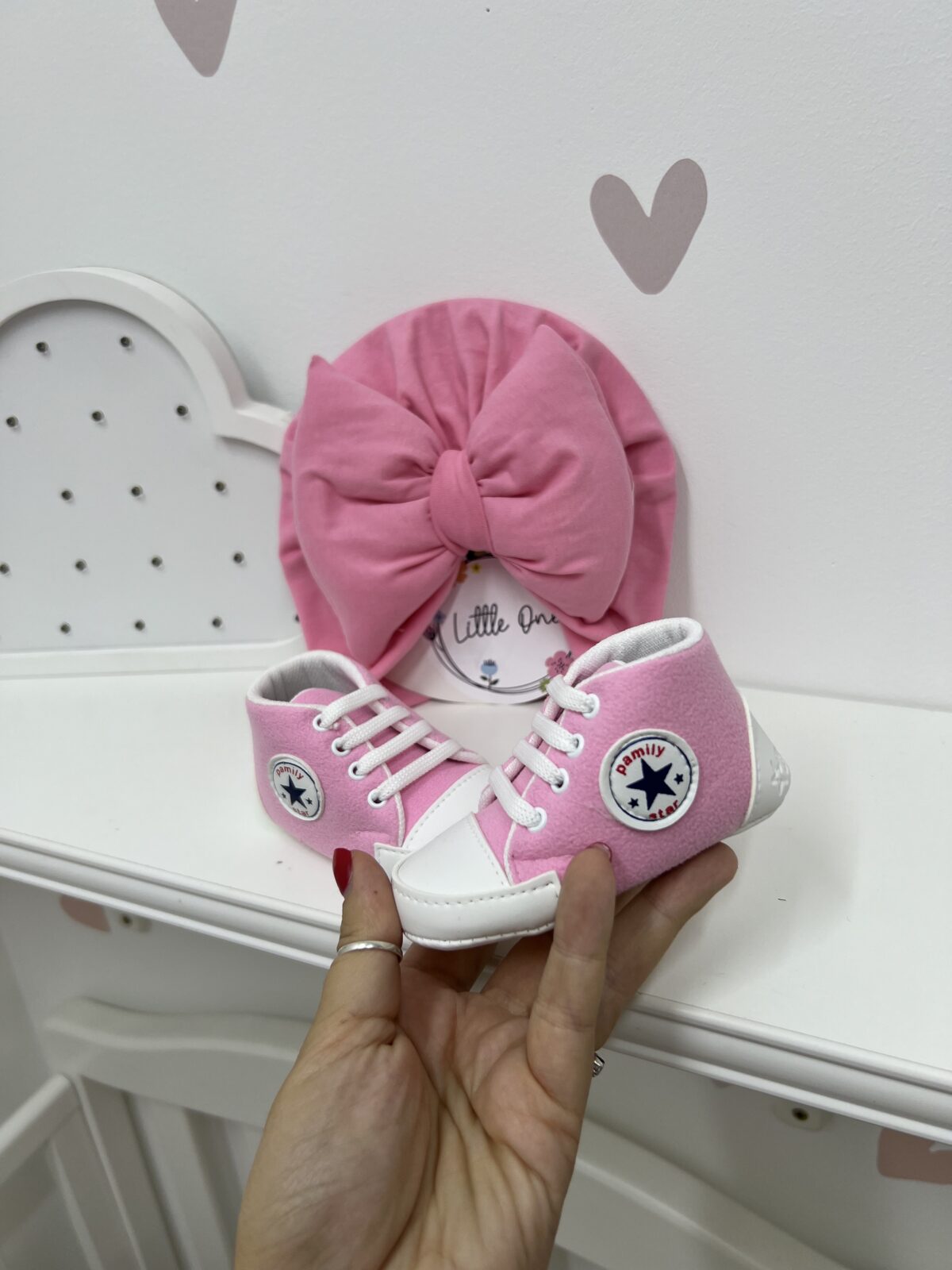 Ove roze nehodeće starkice za bebe do godinu dana pružaju savršenu udobnost i nežnu zaštitu za bebine noge. Dizajnirane su sa mekanim, fleksibilnim dnom koje sprečava klizanje i pruža sigurnost dok beba sedi, leži ili se igra. Roza boja daje im šarmantan i veselo-razigran izgled, a jednostavan dizajn čini ih pogodnim za sve kombinacije. Mekani materijali osiguravaju udobnost tokom celog dana,pertle na patikama olakšava obuvanje i skidanje.