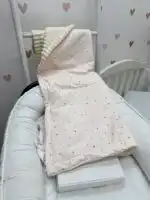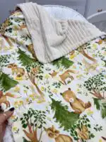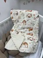 Prekrivač je izrađen sa jedne strane u nežnom dezenu, dok je sa druge strane mekan polar, poput ćebenceta, koji pruža dodatnu toplinu i ušuškanost 👶✨