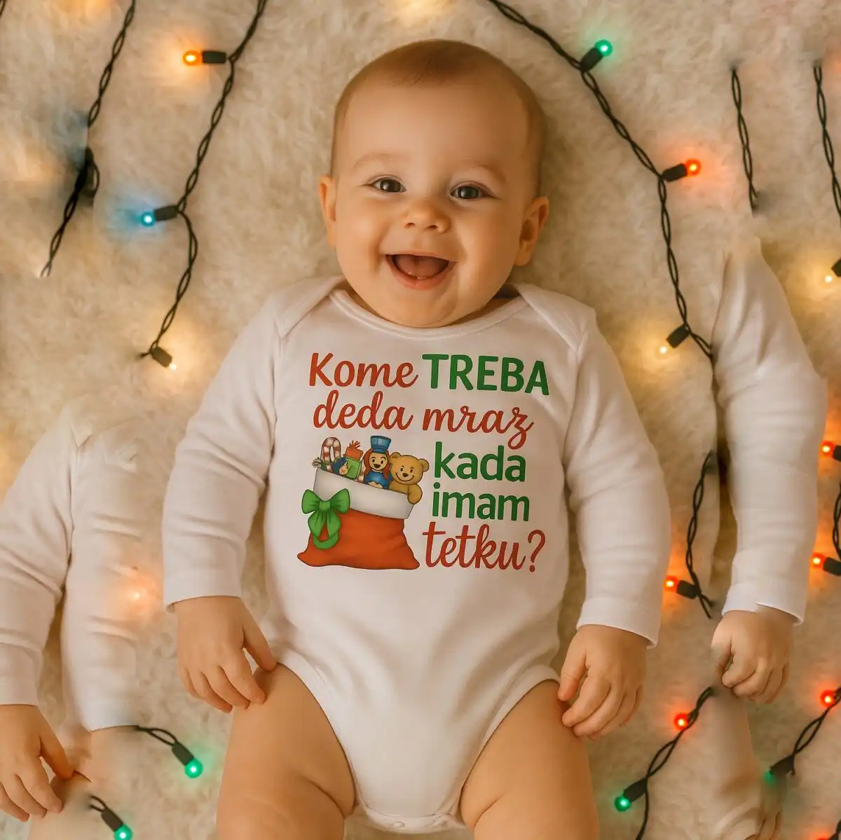 Dizajniran je tako da istovremeno bude udoban za celodnevno nošenje i prelep za sve praznične trenutke. Novogodišnji motivi donose toplinu, radost i onu posebnu prazničnu čar koja se pamti zauvek. Lak je za oblačenje, ne žulja i pruža slobodu pokreta, pa je idealan za praznična slikanja, porodična okupljanja i bebine prve decembarske uspomene. 🎄❤️✨