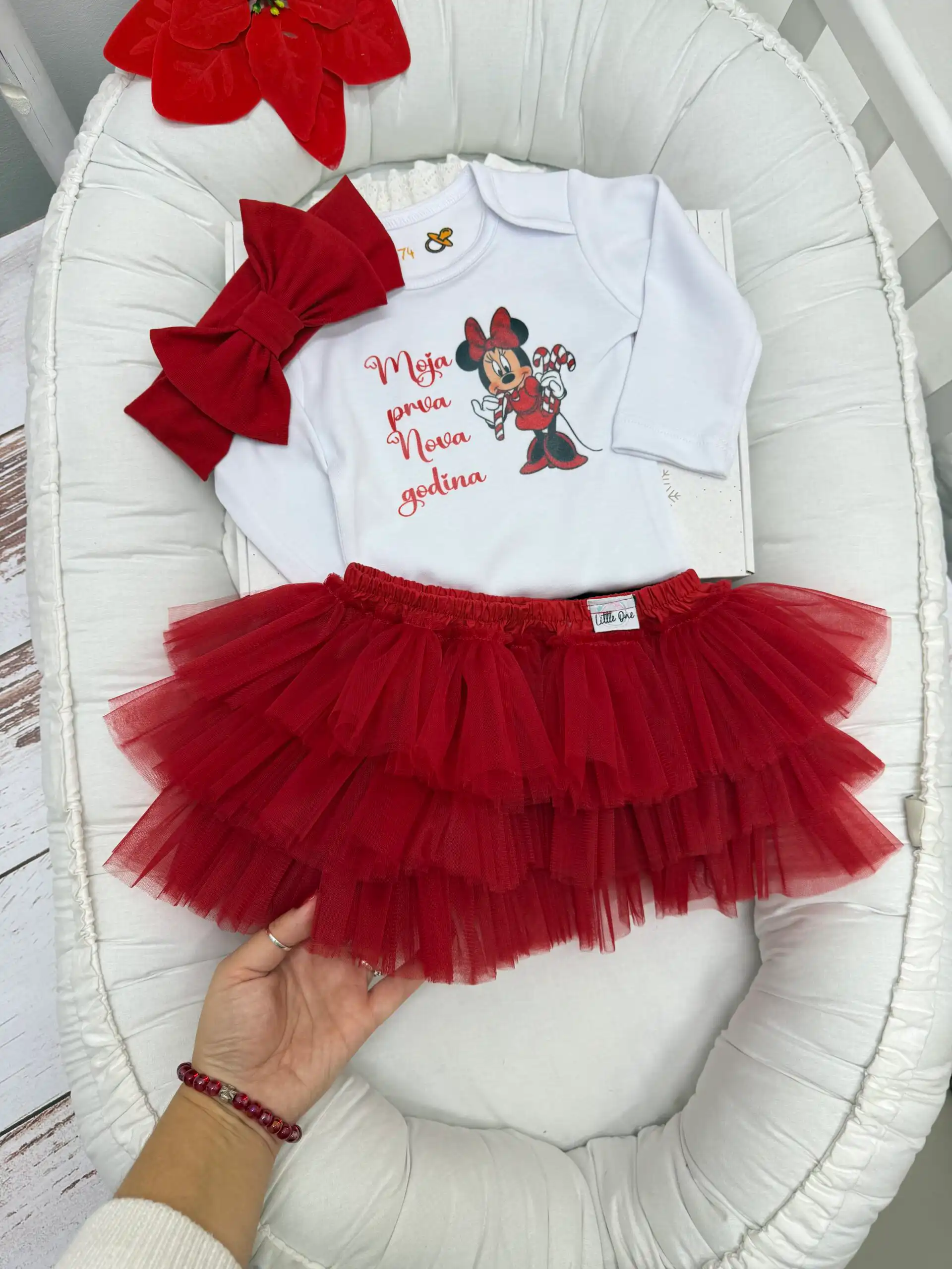 Novogodišnji komplet 3/1 -suknjica Tršavica crvena Minnie