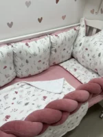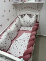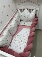 Ekskluzivna ogradica „Royal“ sa pletenicom dizajnirana je da pruži sigurnost i udobnost vašoj bebi. Napravljena od 100% pamuka, sa antialergijskim punjenjem od češljanog silikonskog vlakna, ovaj set osigurava miran i prijatan san.