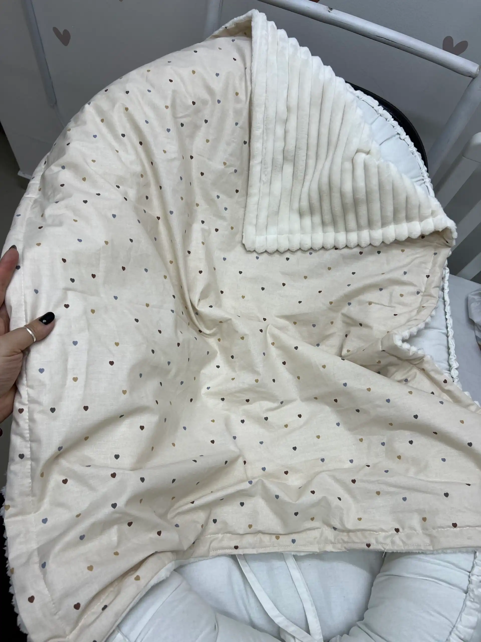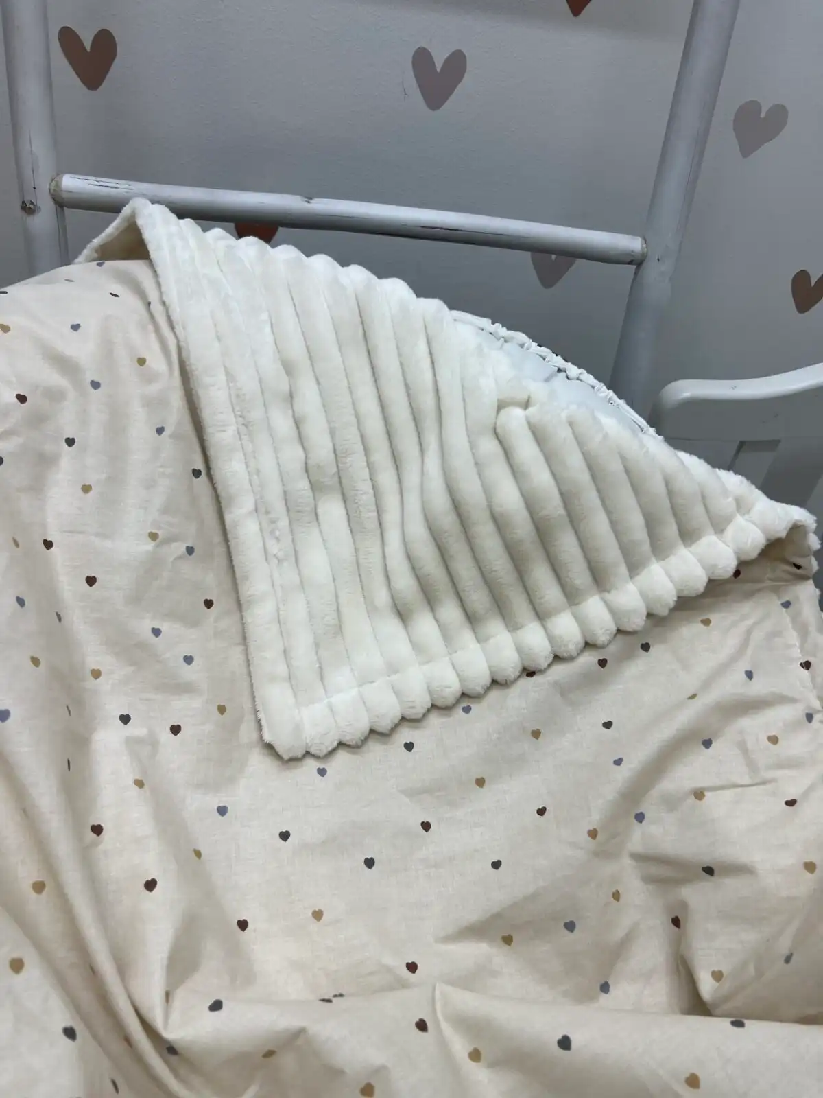 Prekrivač je izrađen sa jedne strane u nežnom dezenu, dok je sa druge strane mekan polar, poput ćebenceta, koji pruža dodatnu toplinu i ušuškanost 👶✨