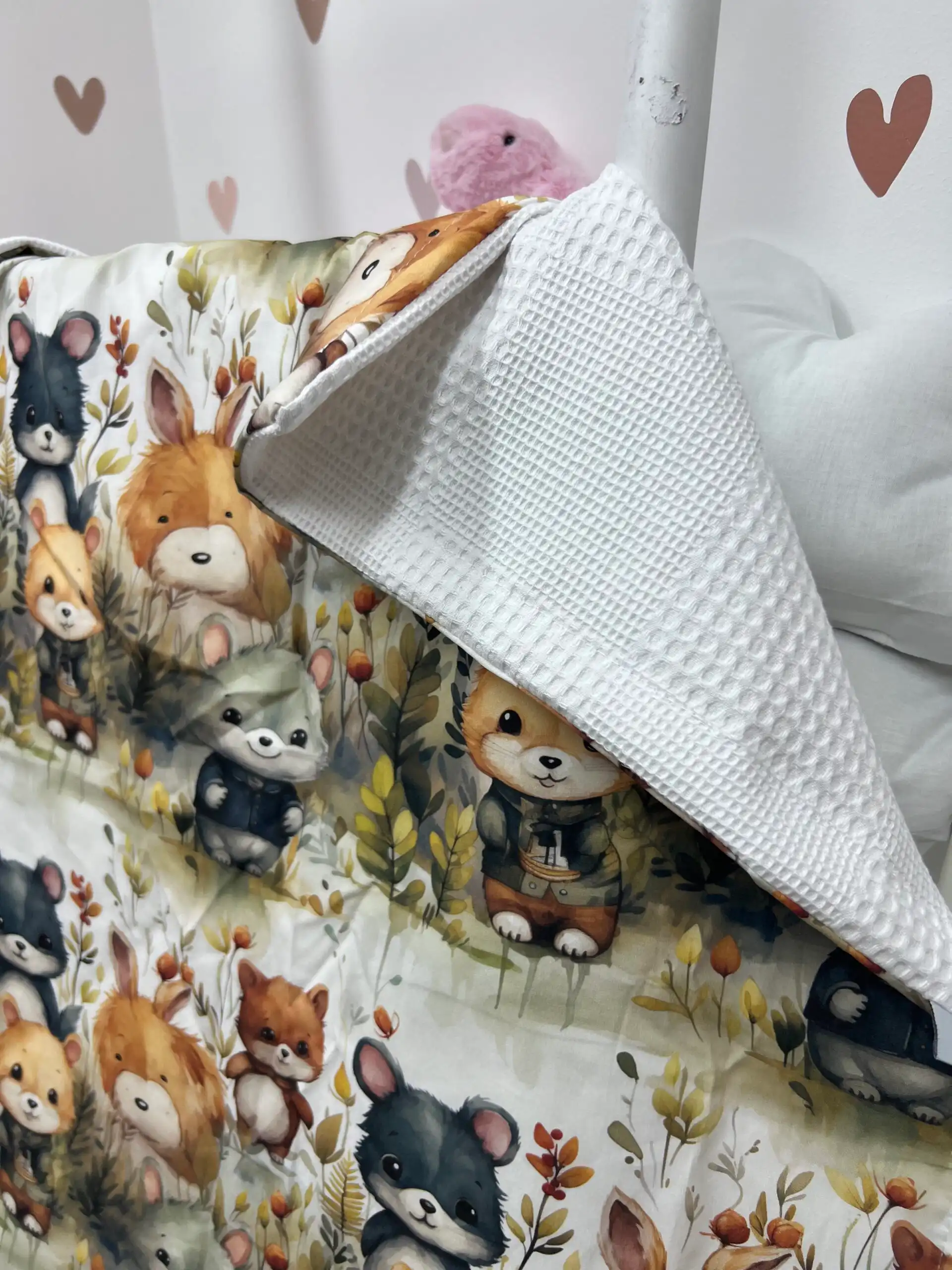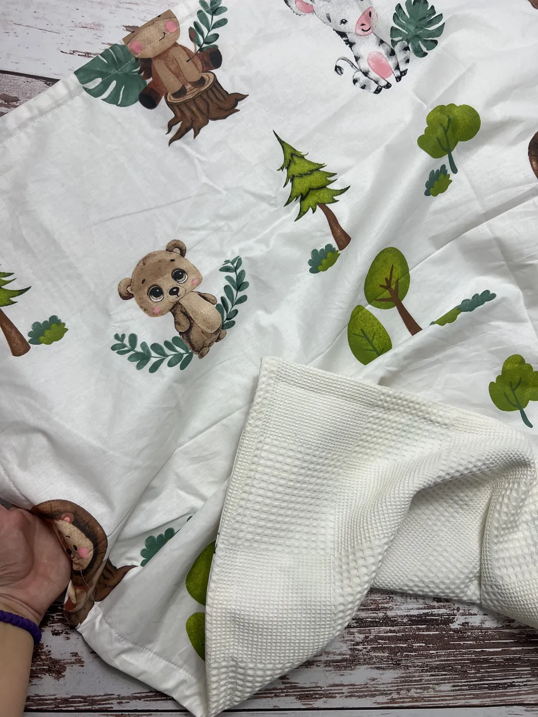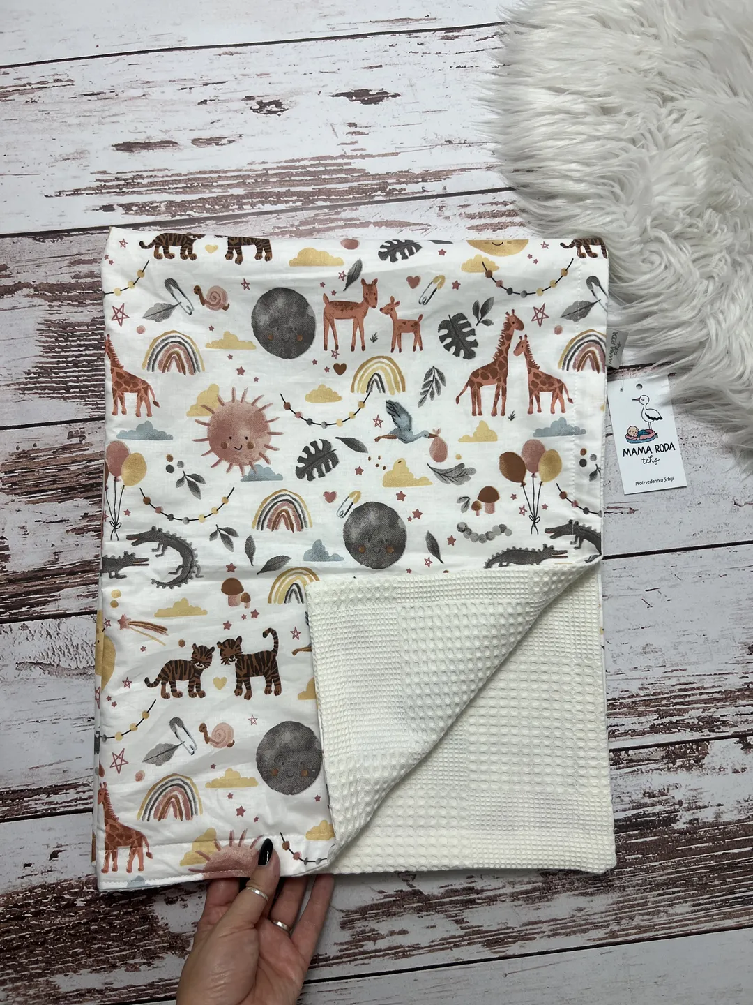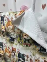 🍼👶 Pamuk Waffle prekrivač za bebe – nežnost i toplina za vaše mališane! Ovaj predivni prekrivač dimenzija 75×100 cm dolazi u raznim dezenima 🎨 i jednobojnim varijantama. Sa jedne strane nalazi se mekani pamuk, dok je naličje izrađeno od waffle pamuka u beloj boji ☁️. Zahvaljujući 100% pamučnom sastavu, ovaj prekrivač je prozračan, nežan za kožu bebe i idealan za sva godišnja doba 🌿✨.